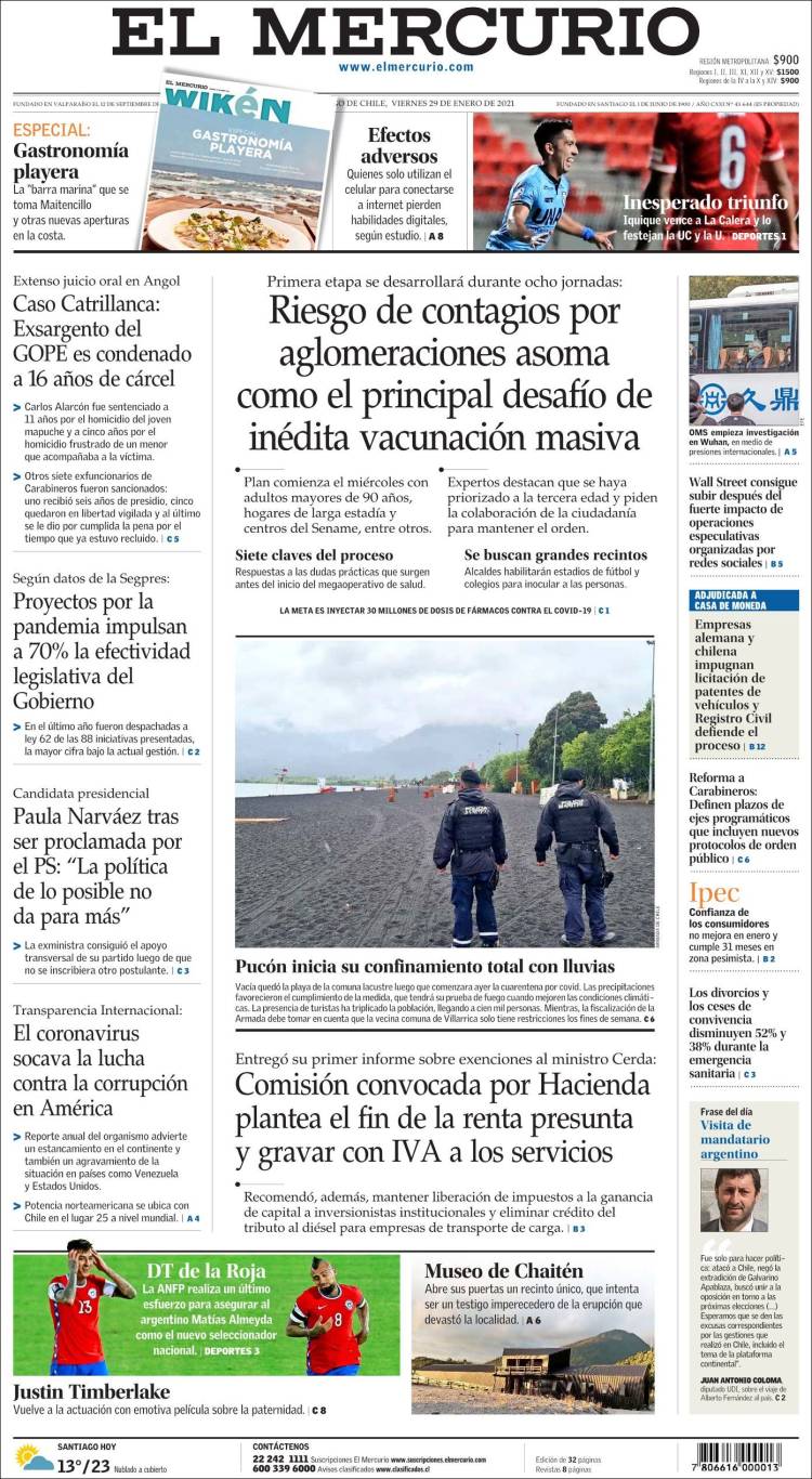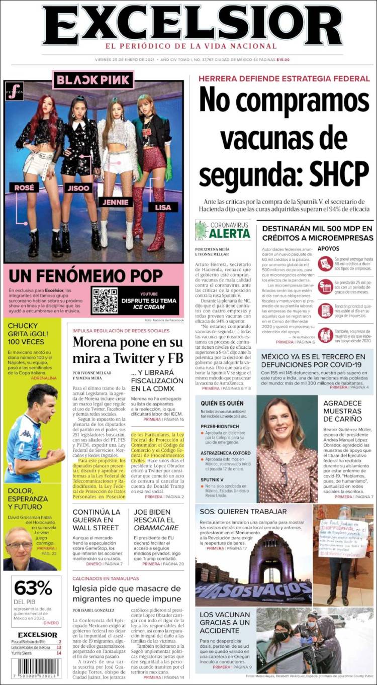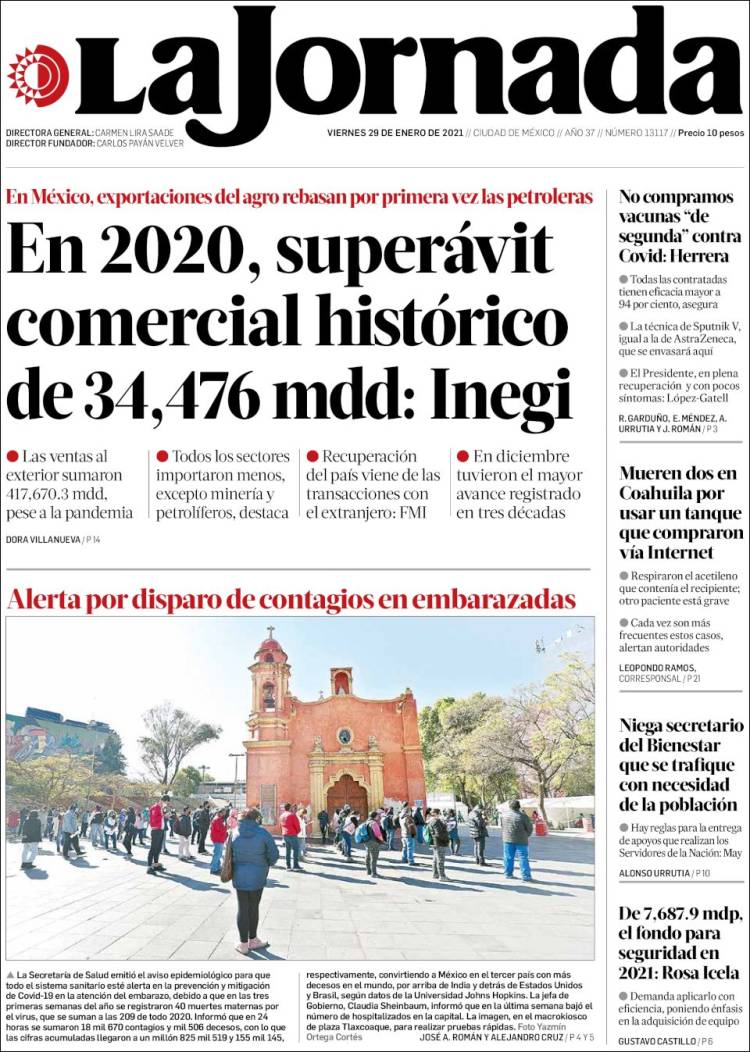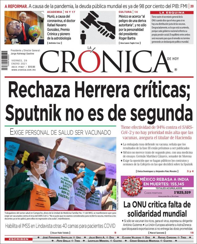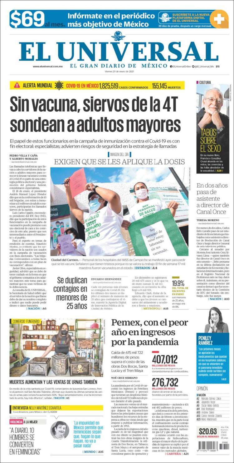 PRIMERAS PLANAS EN MÉXICO Y EL MUNDO DEL 29 DE ENERO DE 2021