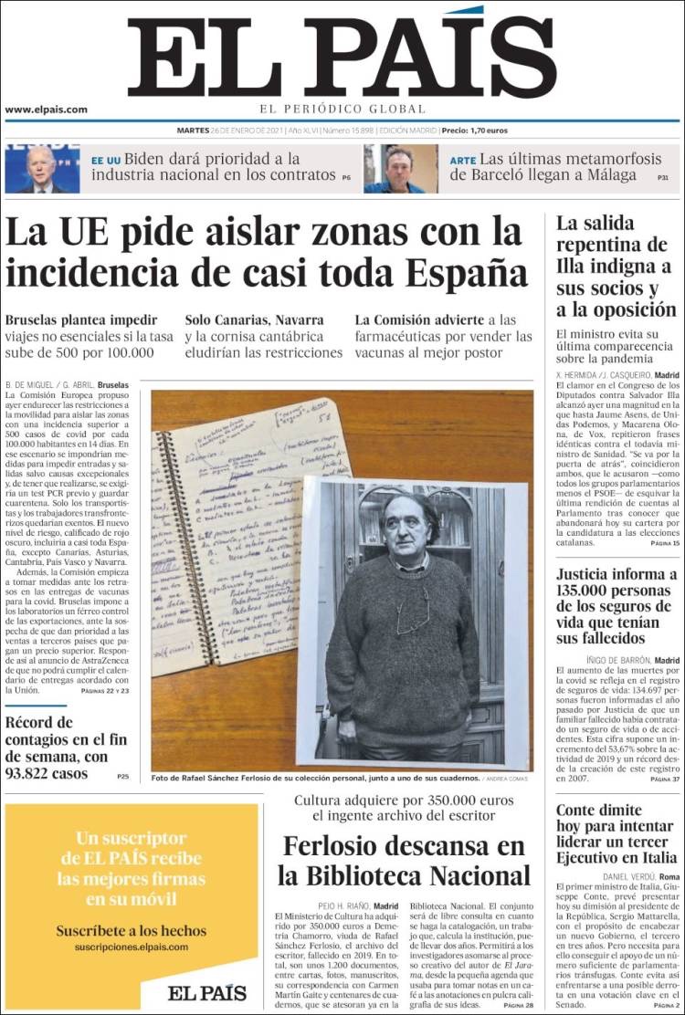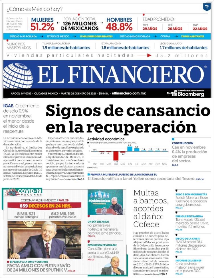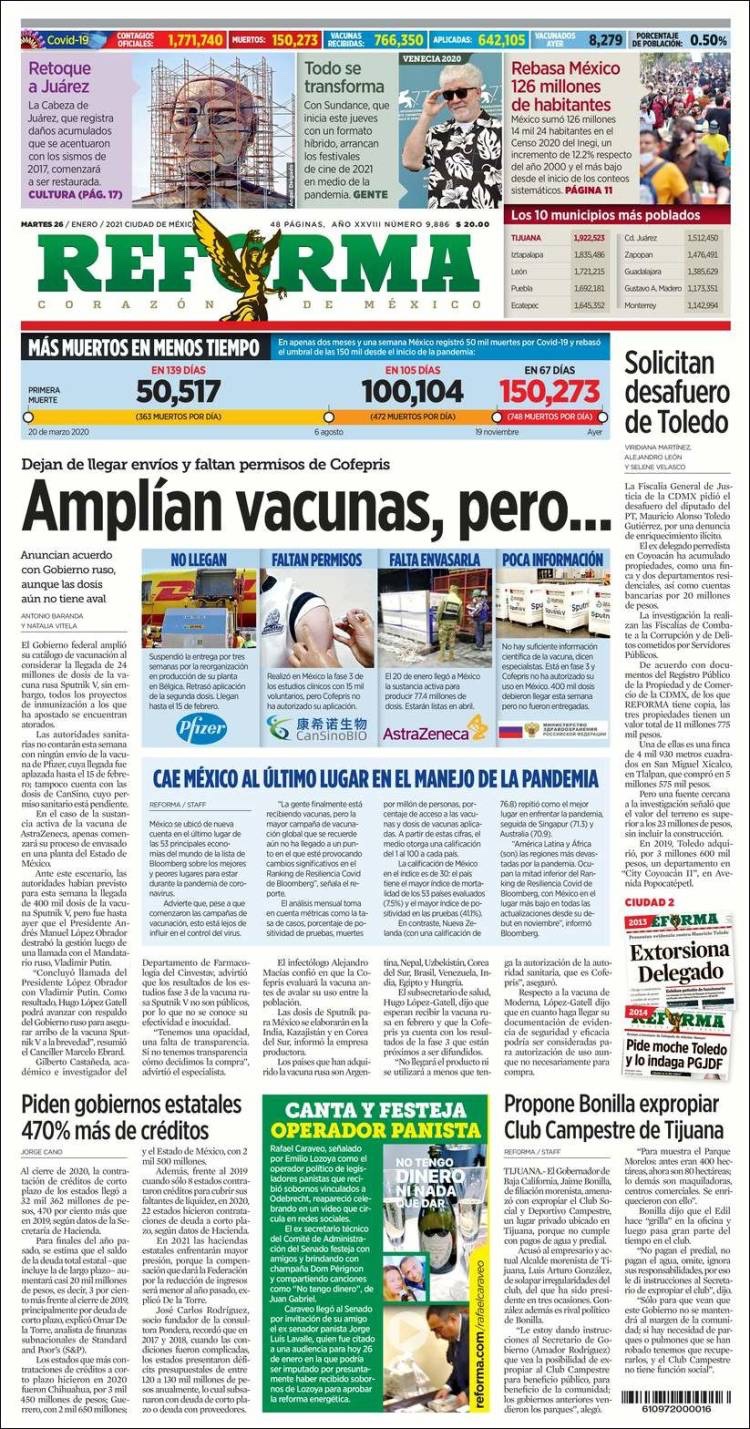 PRIMERAS PLANAS EN MEXICO Y EL MUNDO DEL 26 DE ENERO DE 2021