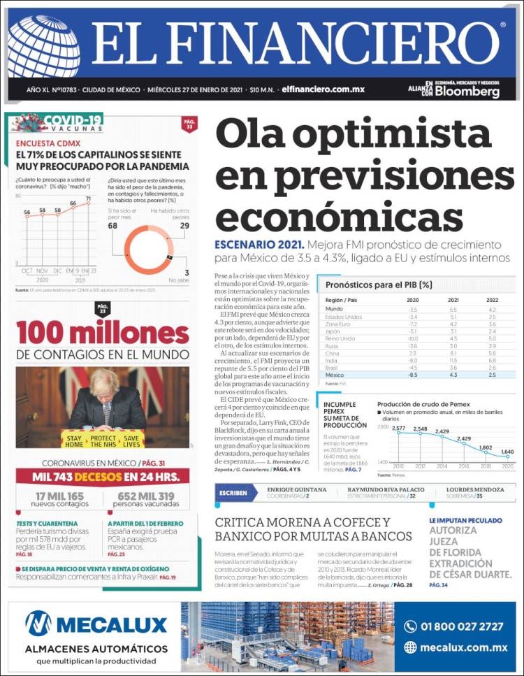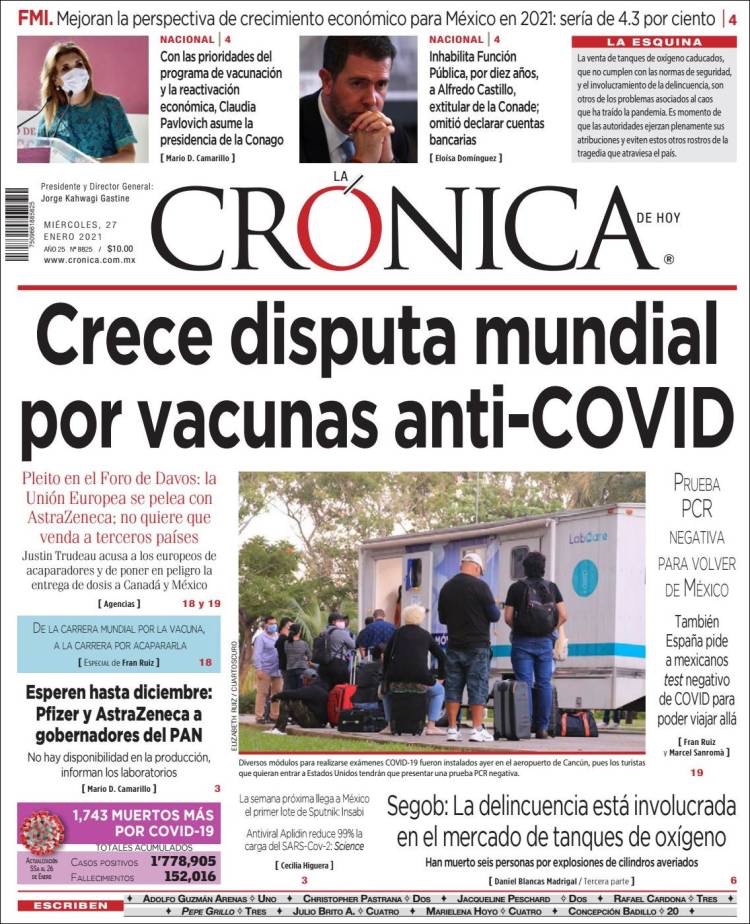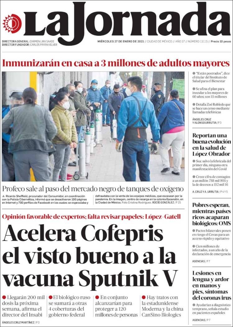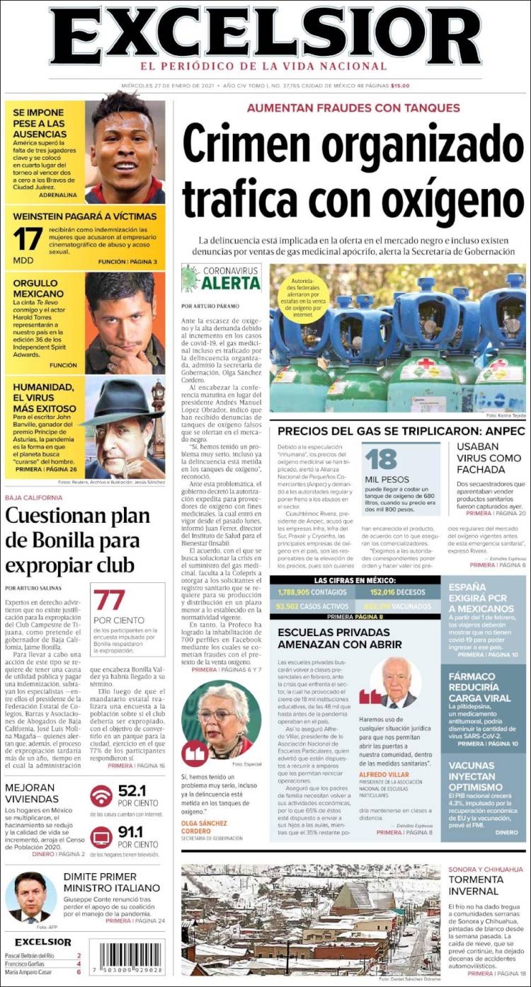 PRIMERAS PLANAS EN MEXICO Y EL MUNDO DEL 27 DE ENERO DE 2021