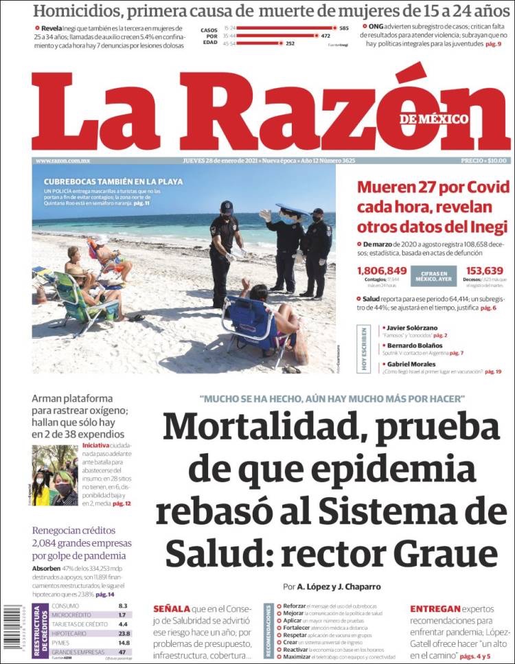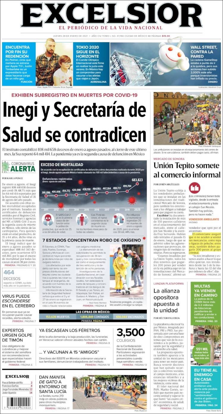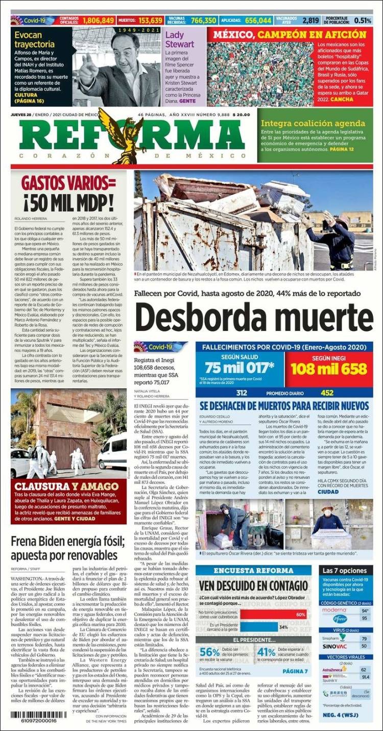 PRIMERAS PLANAS EN MEXICO Y EL MUNDO DEL 28 DE ENERO DE 2021
