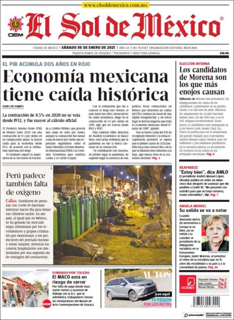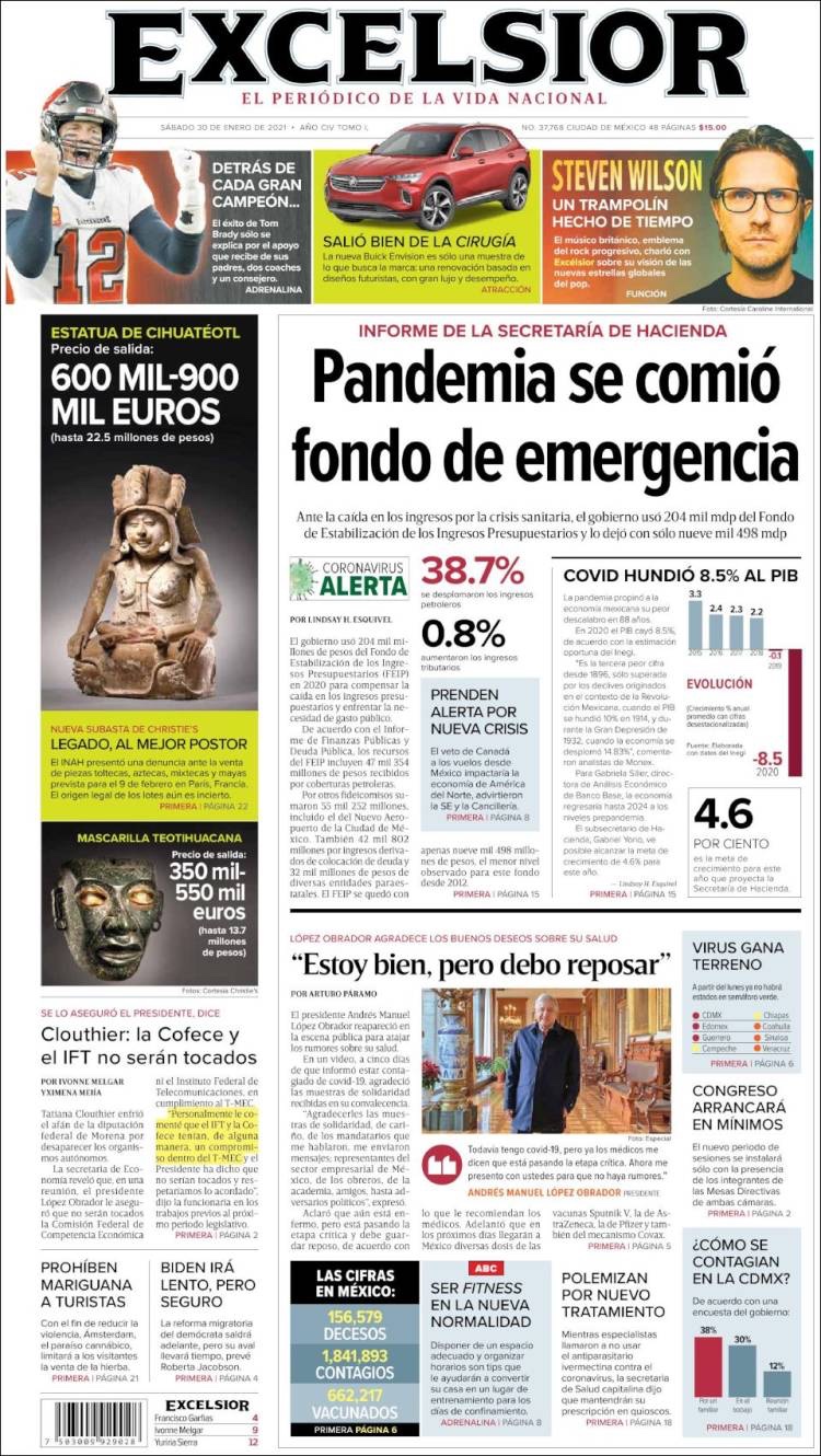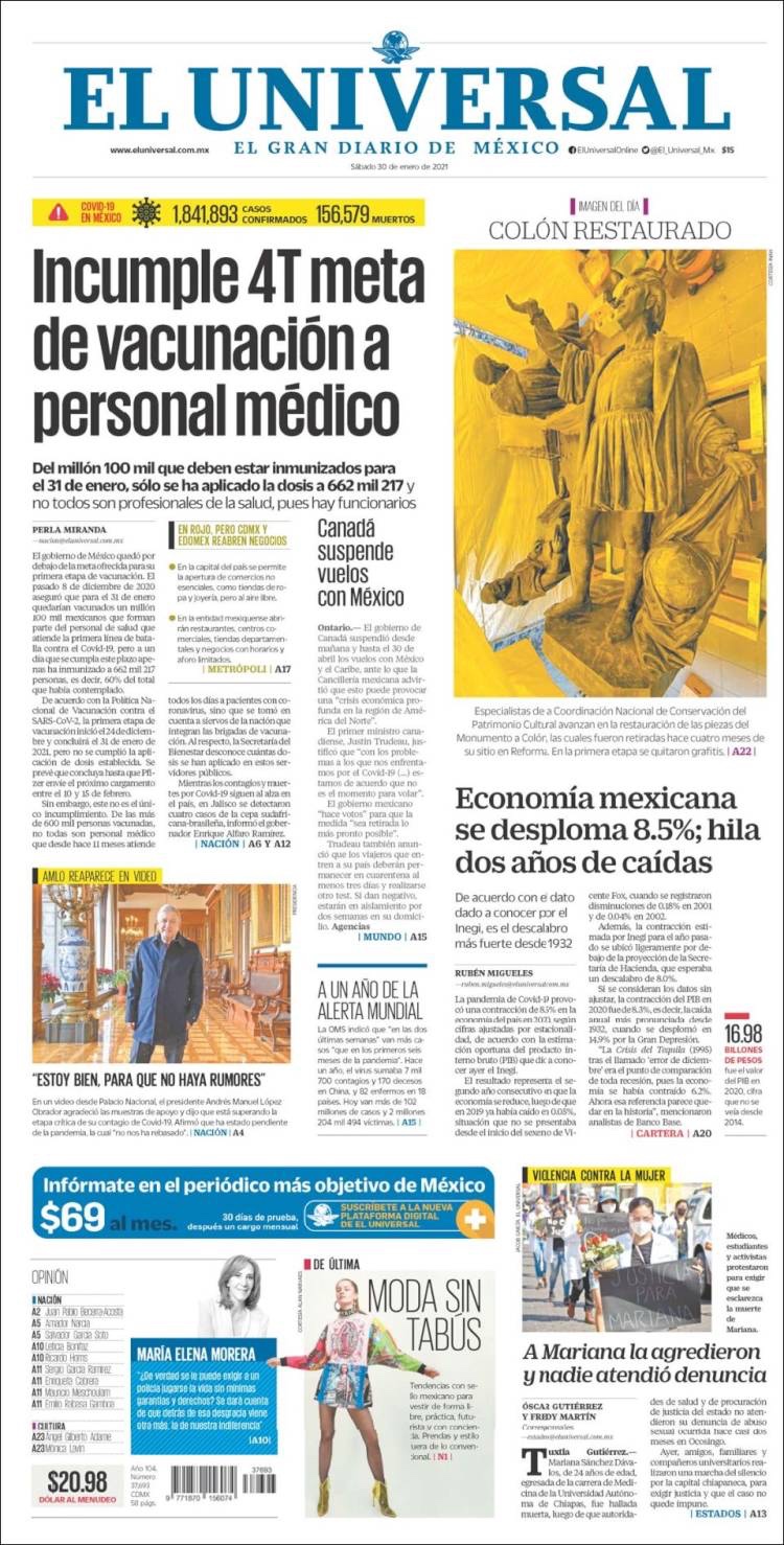 PRIMERAS PLANAS EN MEXICO Y EL MUNDO DEL 30 DE ENERO DE 2021