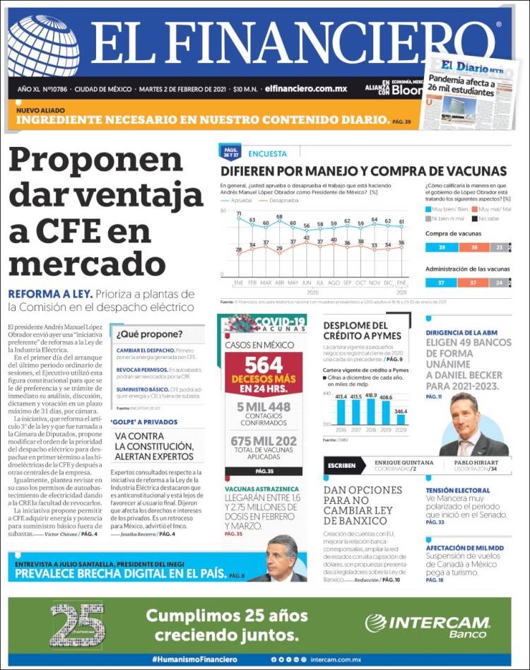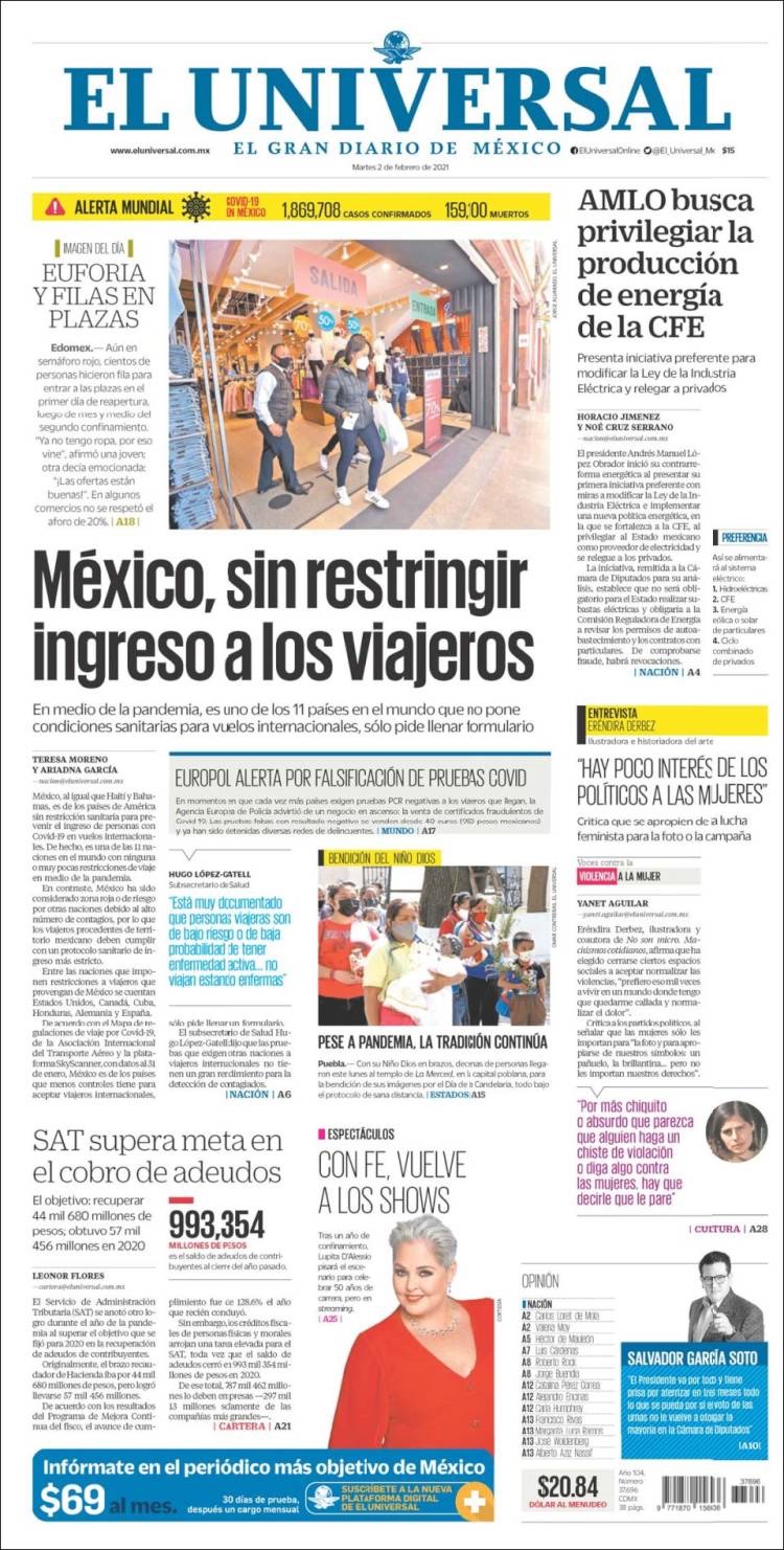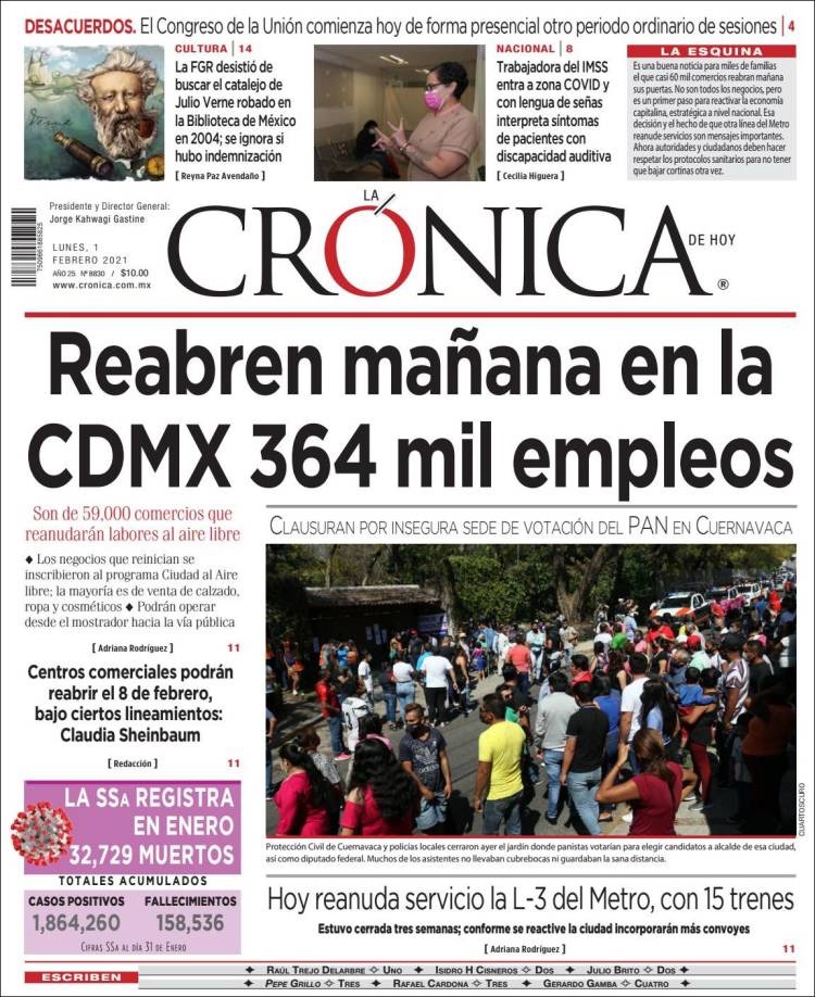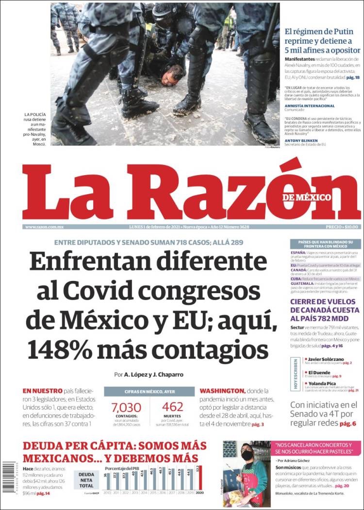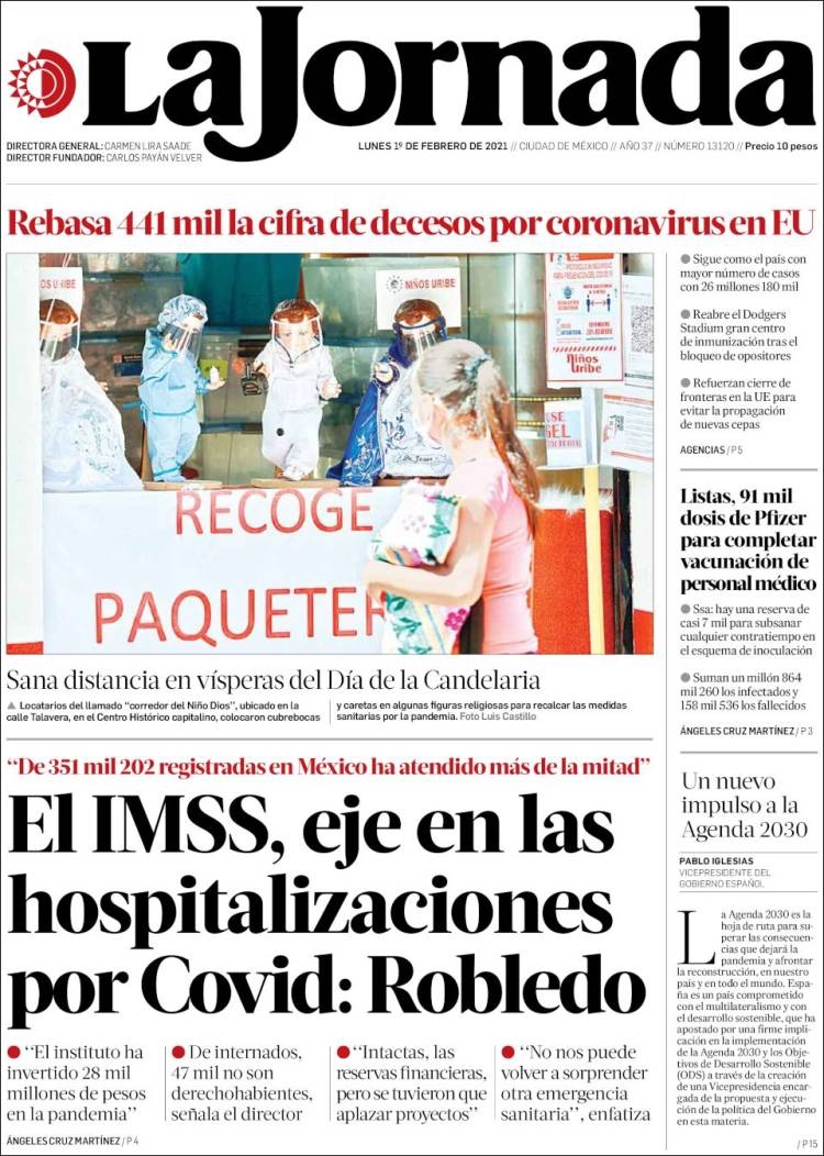 PRIMERAS PLANAS EN MEXICO Y EL MUNDO DEL 1 DE FEBRERO DE 2021
