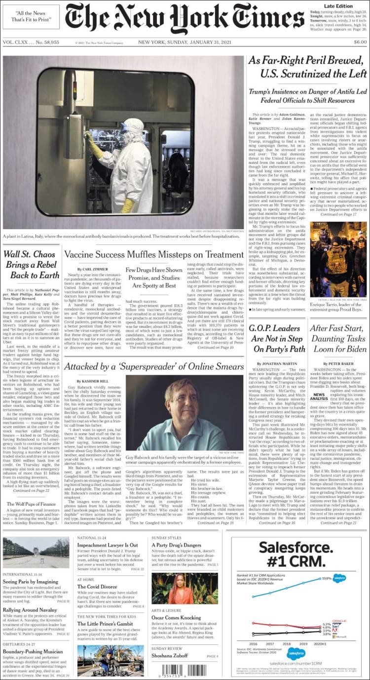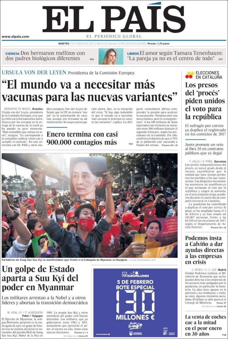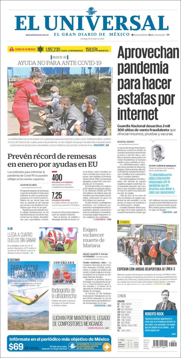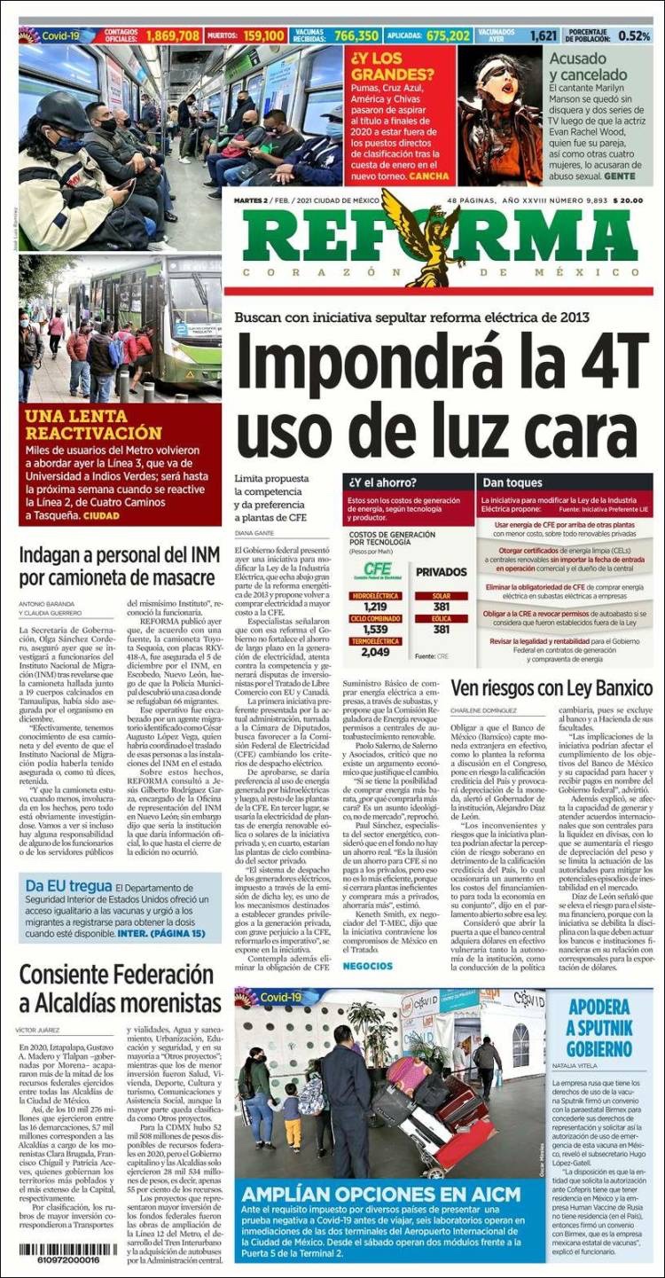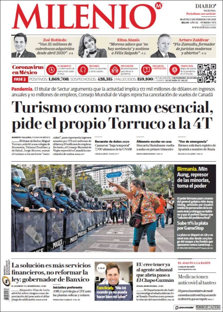 PRIMERAS PLANAS EN MEXICO Y EL MUNDO DEL 1 DE FEBRERO DE 2021