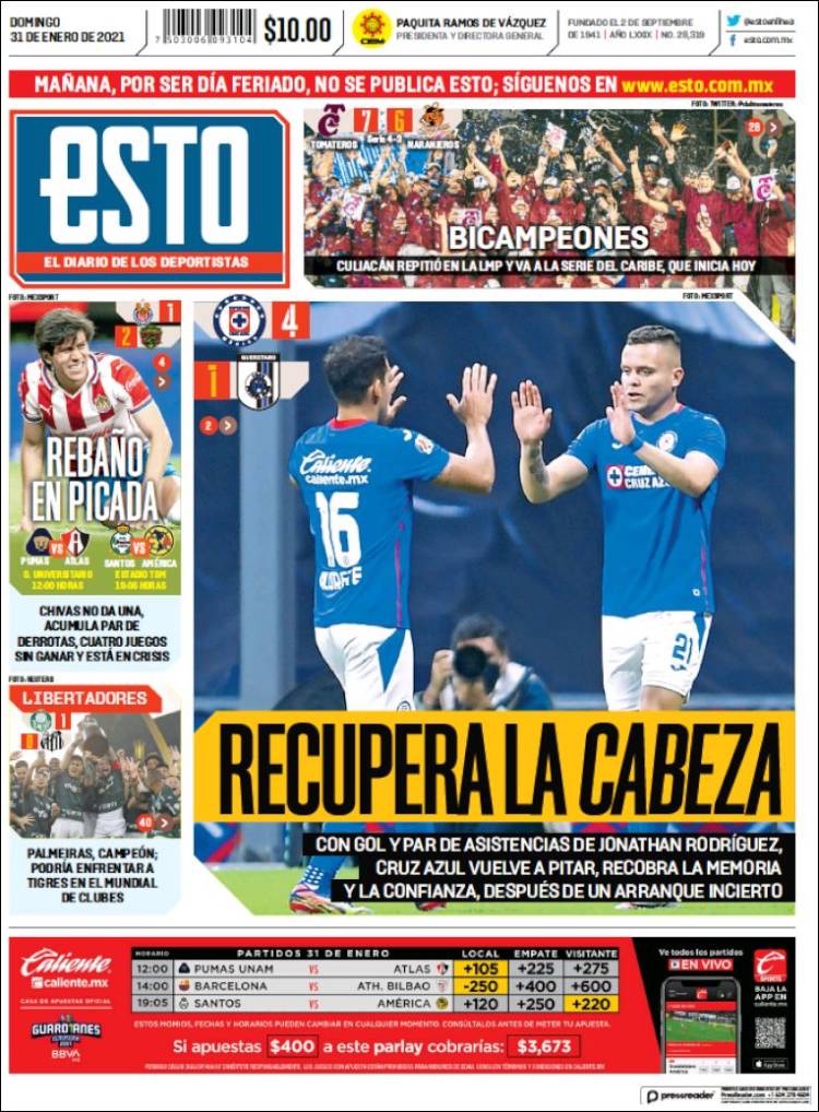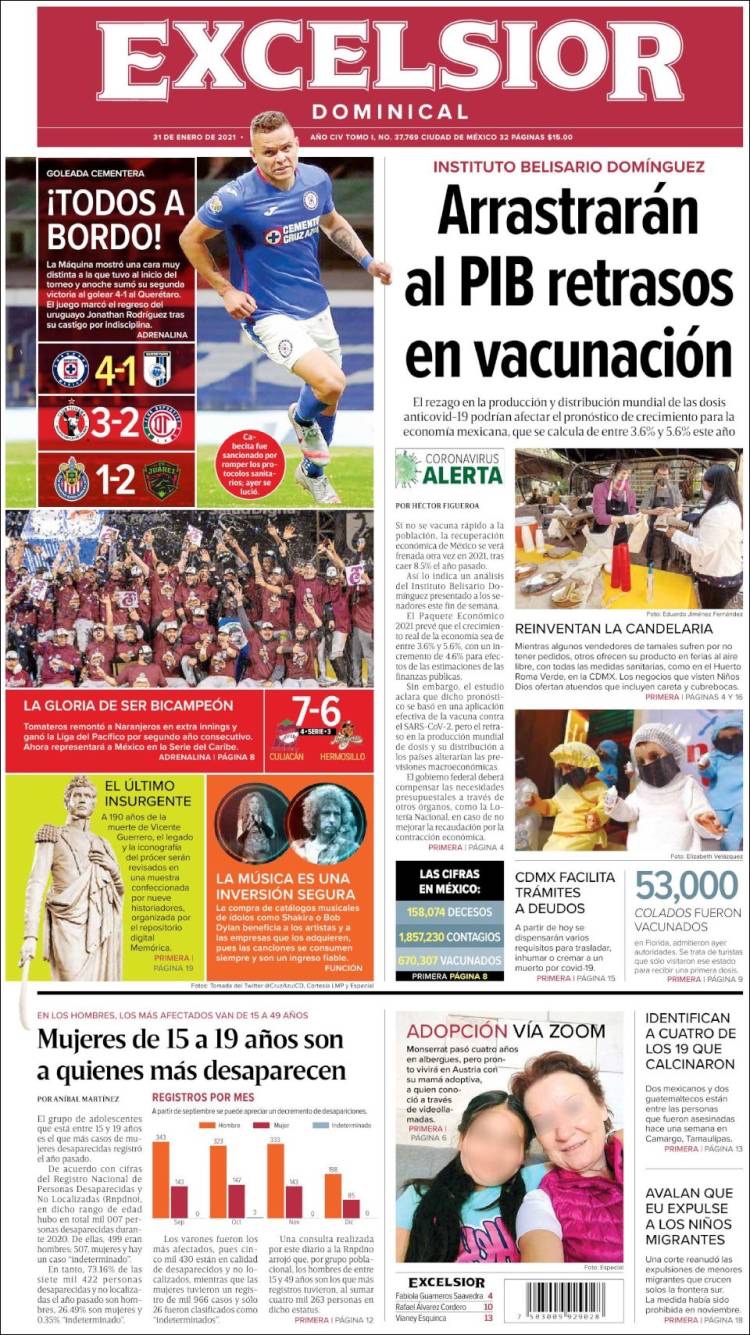PRIMERAS PLANAS EN MEXICO Y EL MUNDO DEL 31 DE ENERO DE 2021