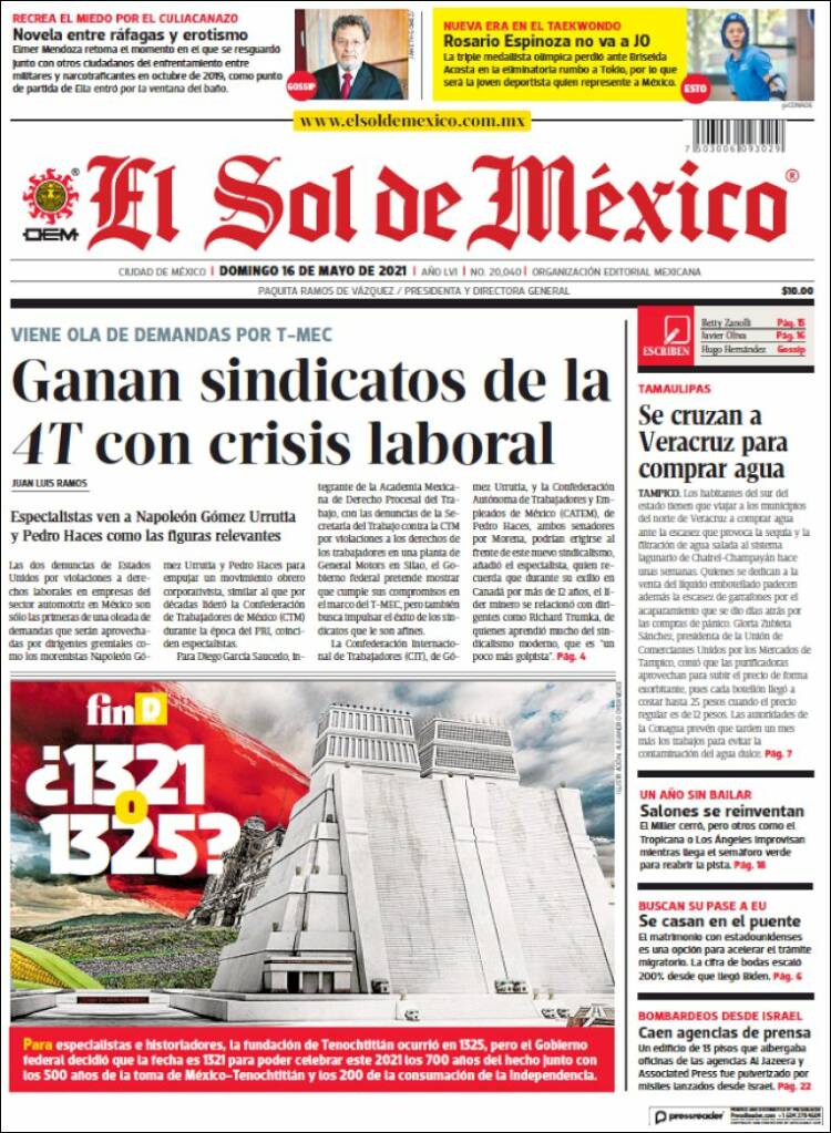 PRIMERAS PLANAS EN MÉXICO Y EL MUNDO DEL 15 DE MAYO DE 2021