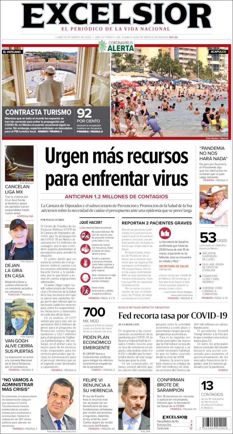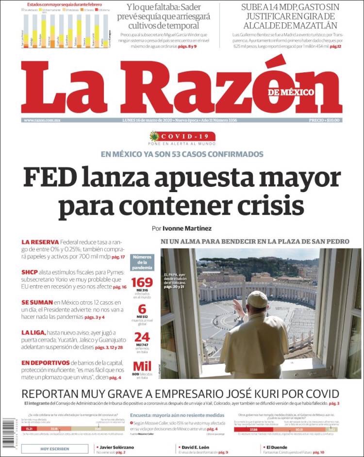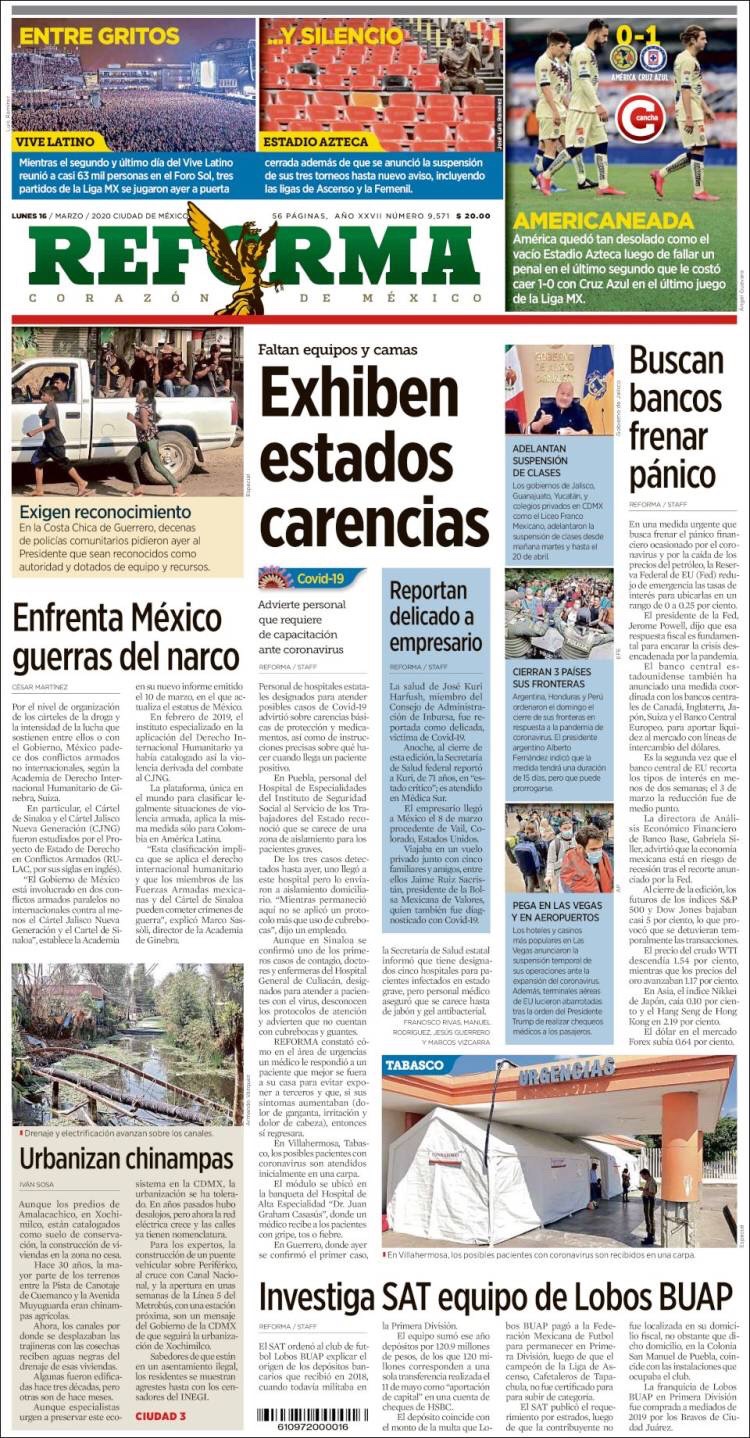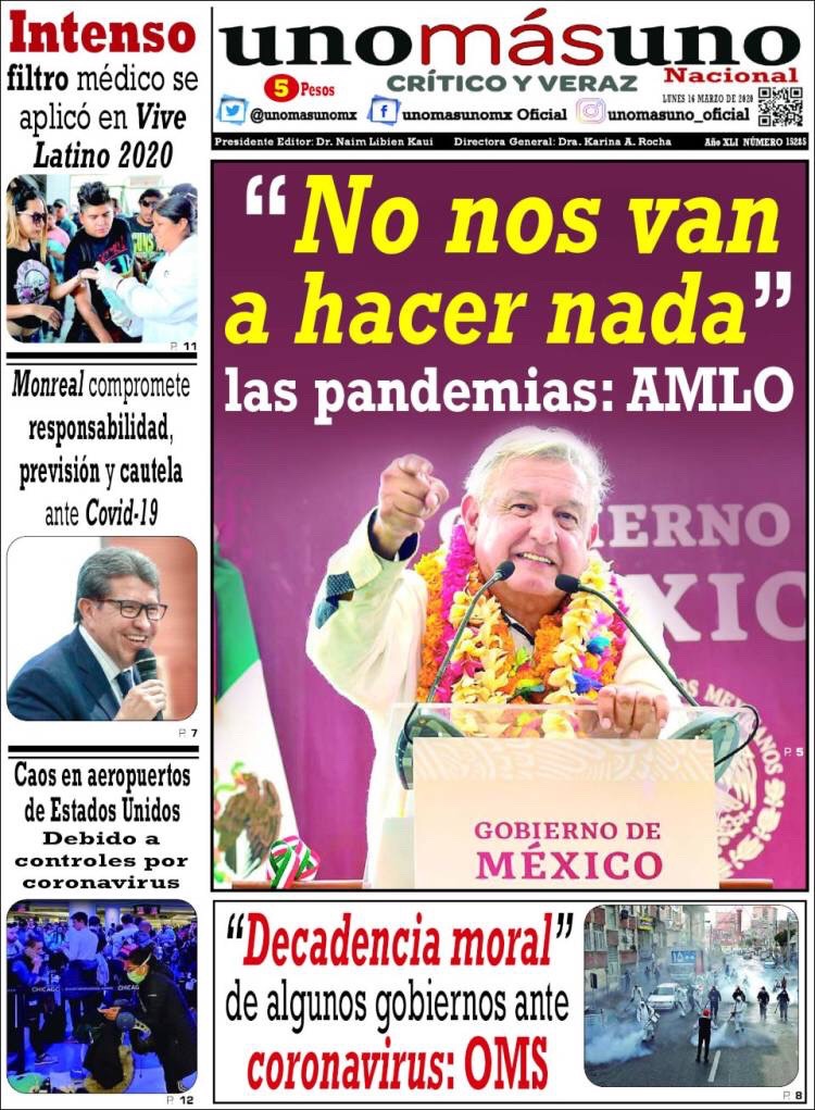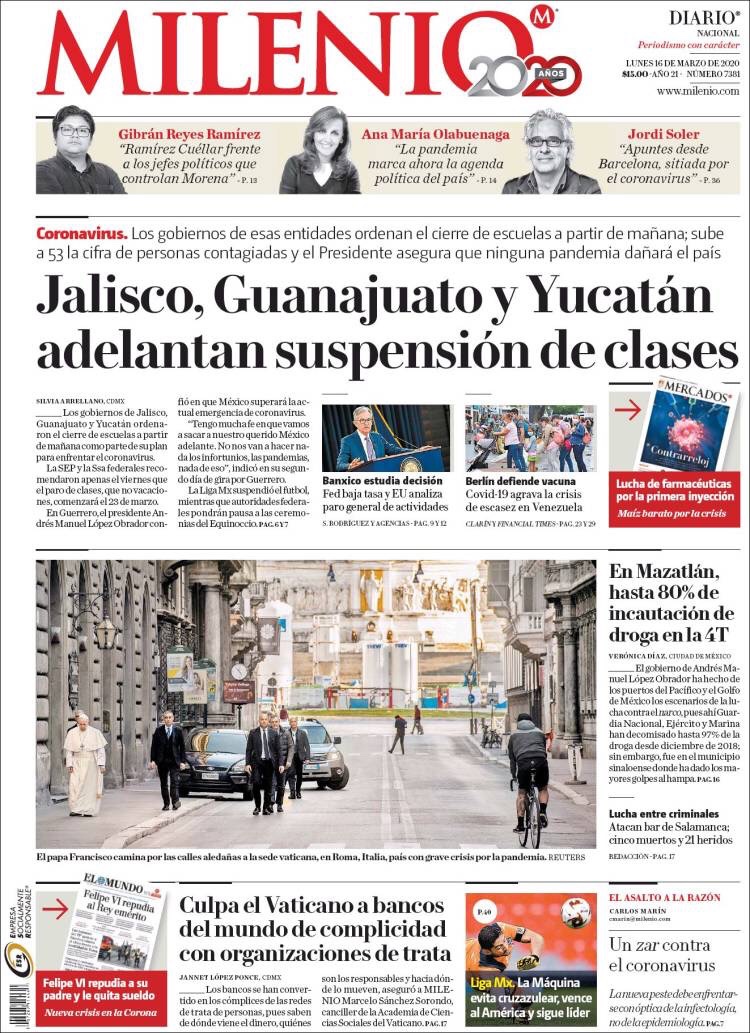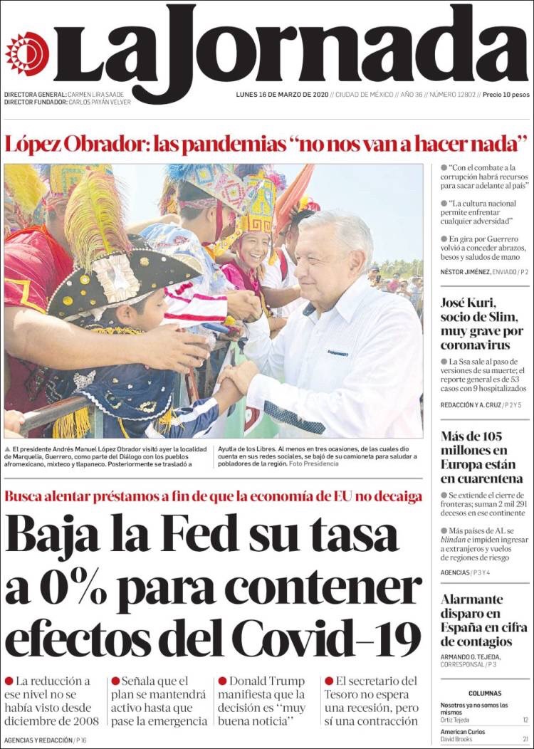 PRIMERAS PLANAS EN MEXICO DEL 16 DE MARZO DE 2020 Publicado porNotimexpr16 marzo, 2020Publicado en Nacional, Sin categoría Compártelo:TweetMe gusta Cargando... Relacionado