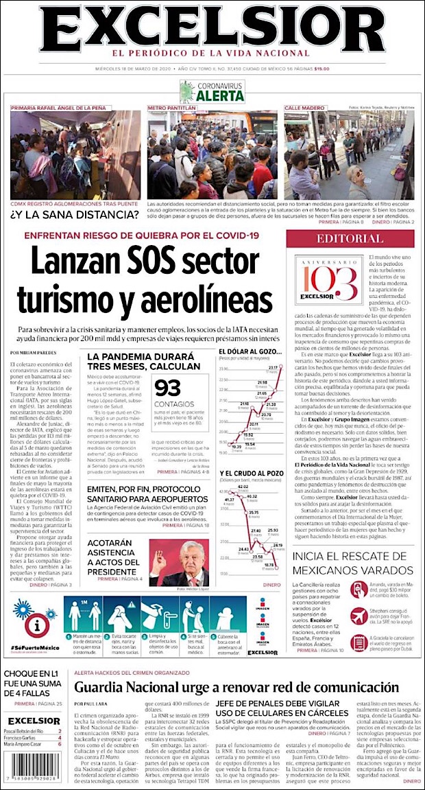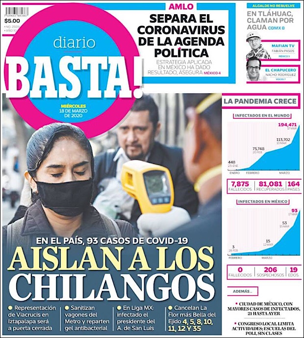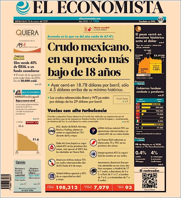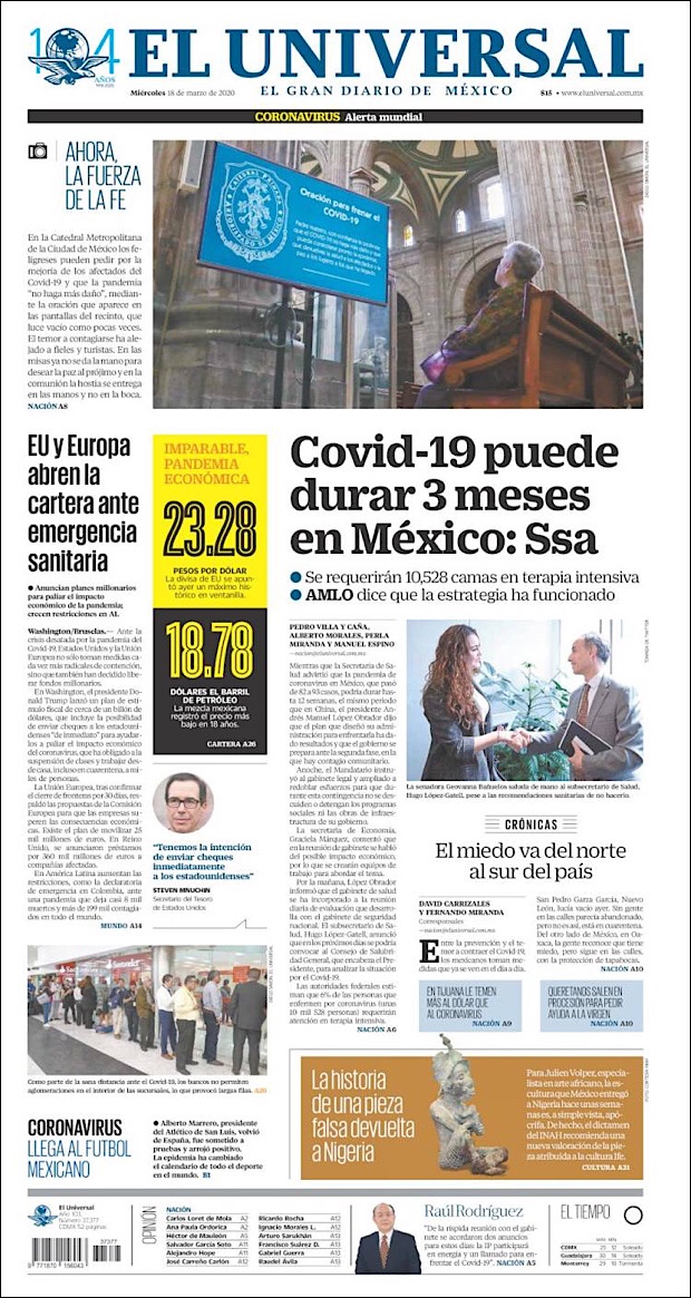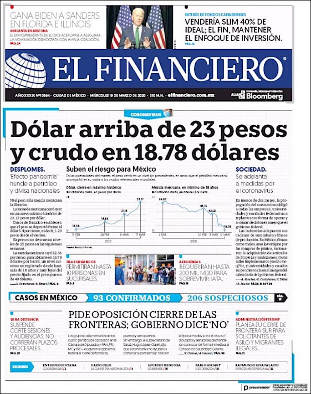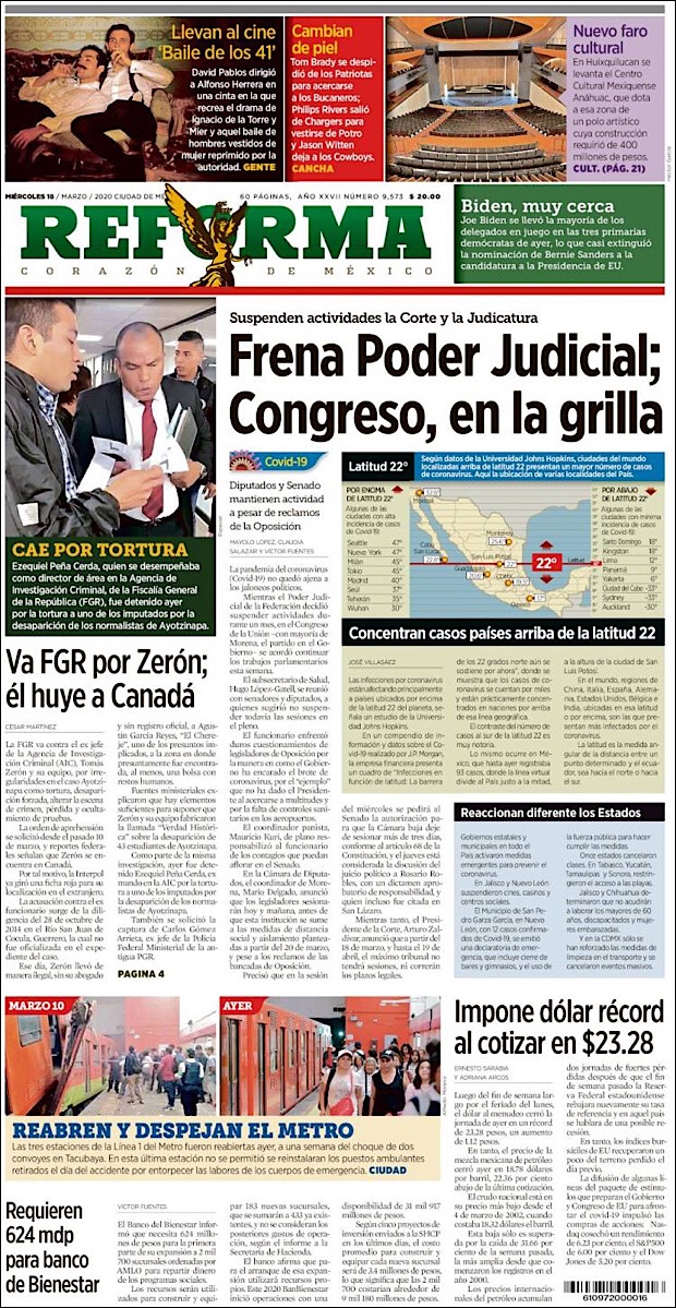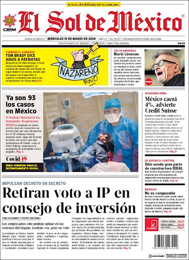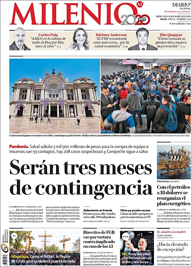 PRIMERAS PLANAS EN MEXICO DEL 18 de MARZO DE 2020 Publicado porNotimexpr18 marzo, 202018 marzo, 2020Publicado en Nacional, Sin categoría Compártelo:TweetMe gusta Cargando... Relacionado