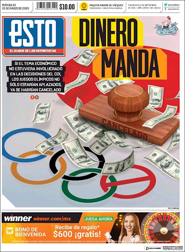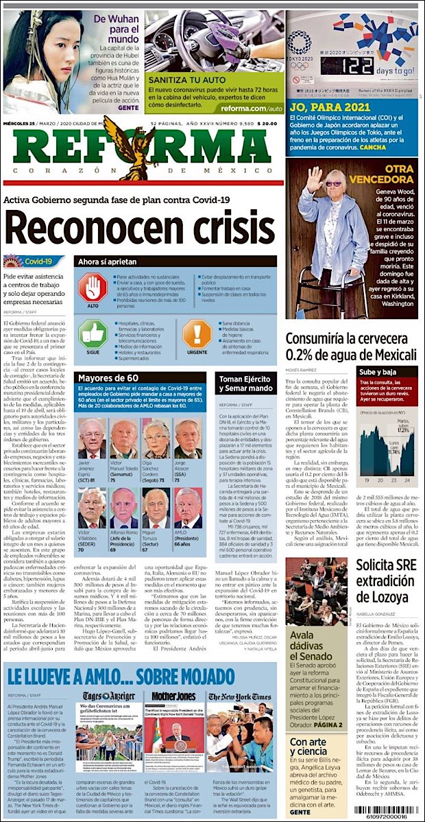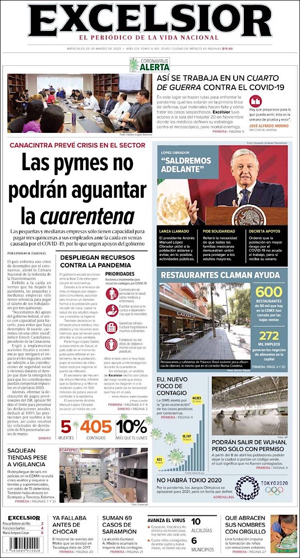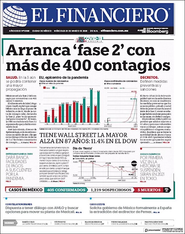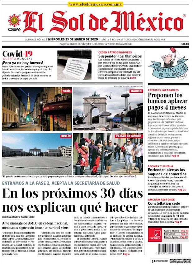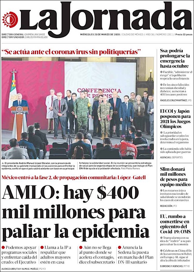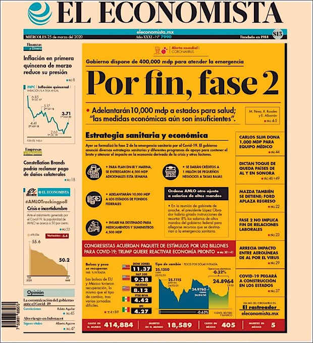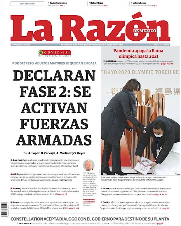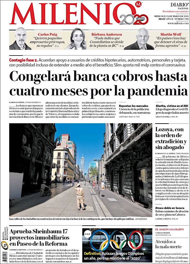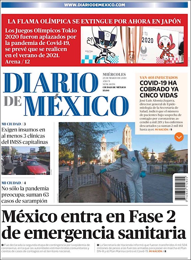 PRIMERAS PLANAS EN MEXICO DEL 25 DE MARZO DE 2020 Publicado porNotimexpr25 marzo, 2020Publicado en Nacional, Sin categoría Compártelo:TweetMe gusta Cargando... Relacionado
