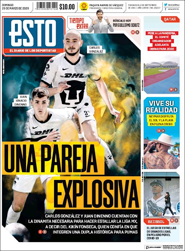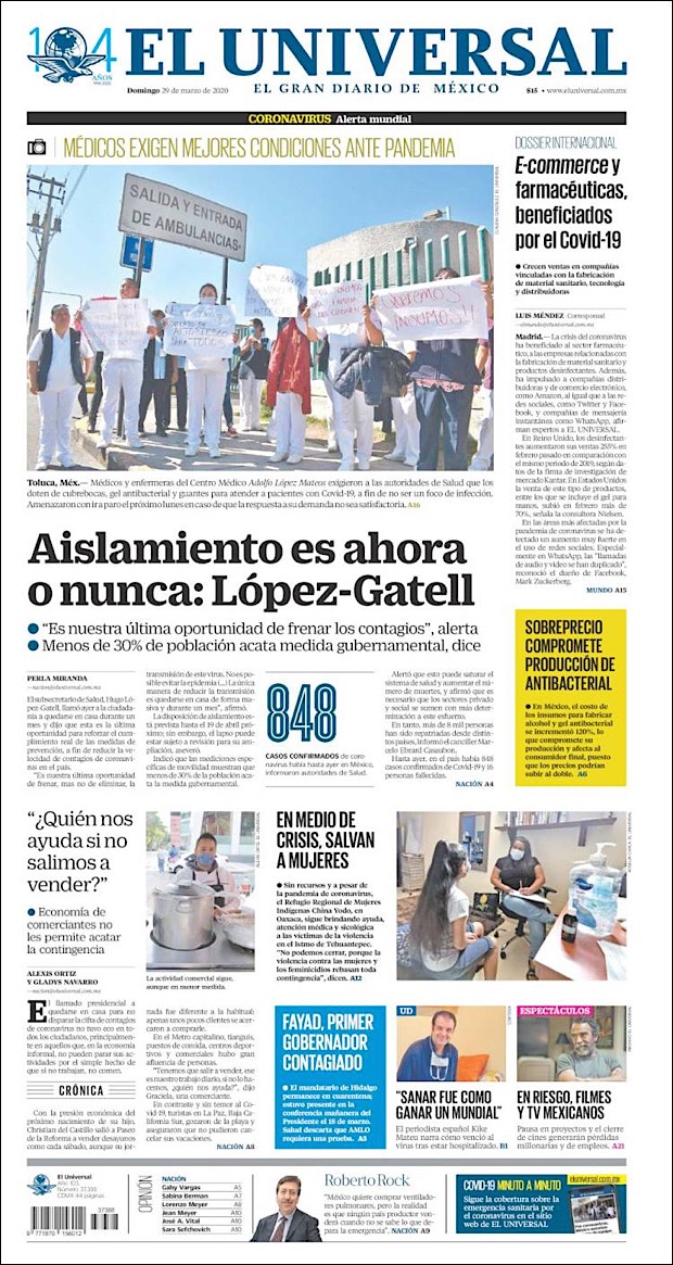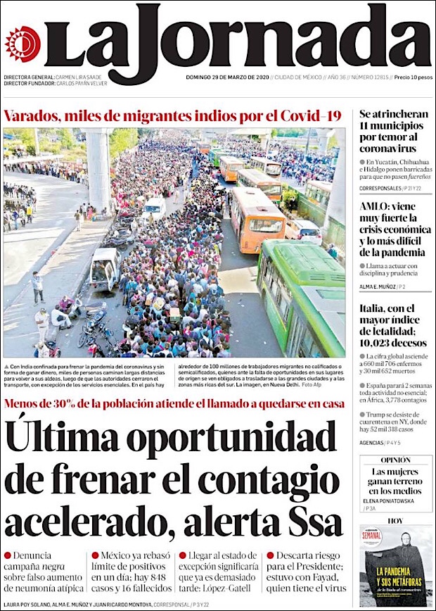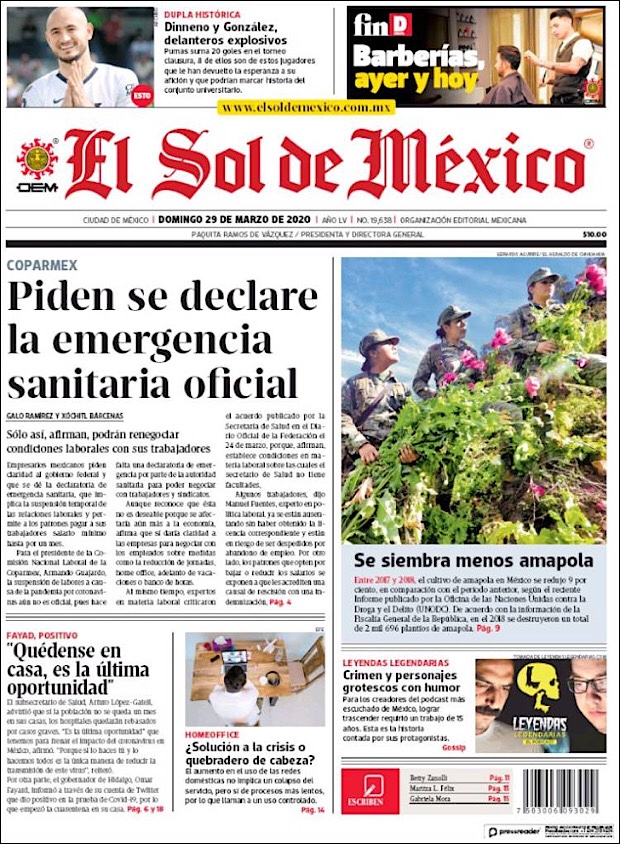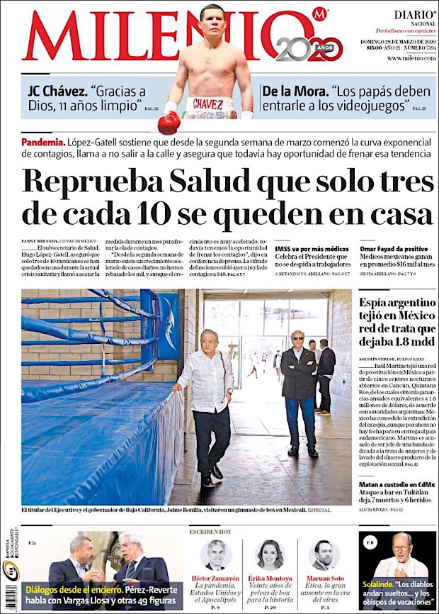 PRIMERAS PLANAS EN MEXICO DEL 29 DE MARZO DE 2020 Publicado porNotimexpr29 marzo, 2020Publicado en Nacional, Sin categoría Compártelo:TweetMe gusta Cargando... Relacionado