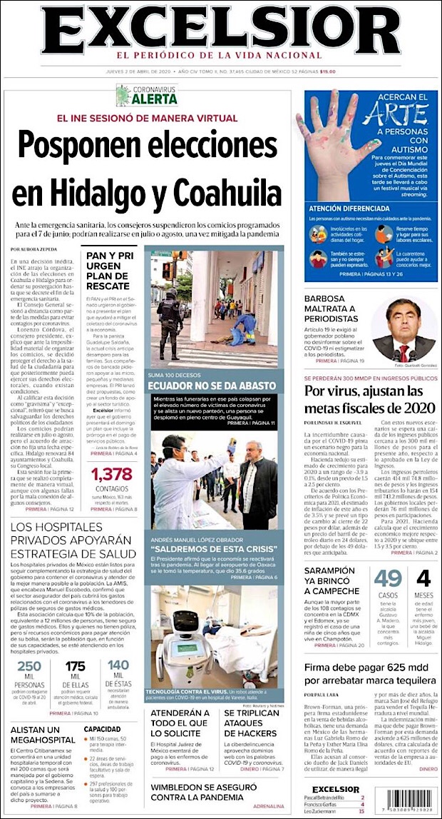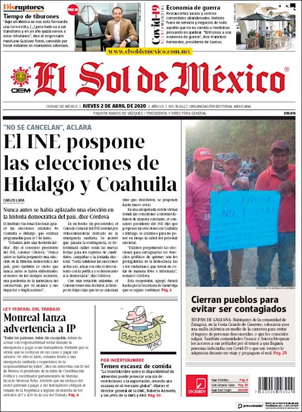 PRIMERAS PLANAS EN MEXICO DEL 02 DE ABRIL DE 2020 Publicado porNotimexpr2 abril, 2020Publicado en Nacional, Sin categoría Compártelo:TweetMe gusta Cargando... Relacionado