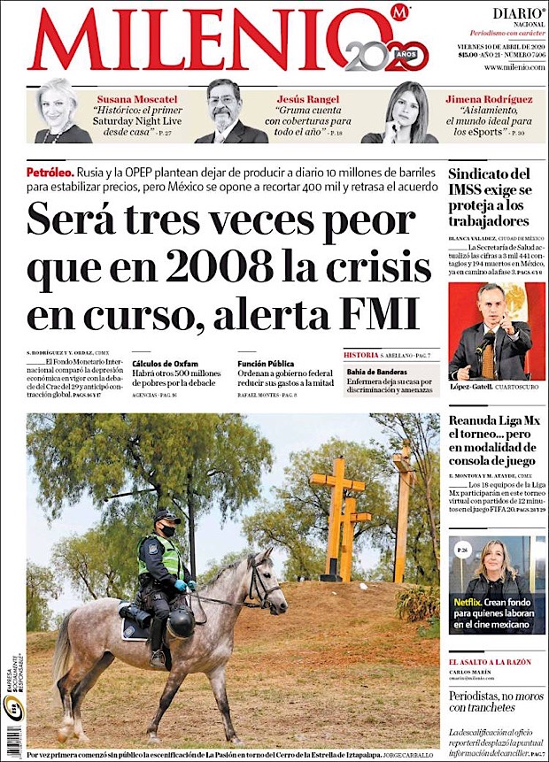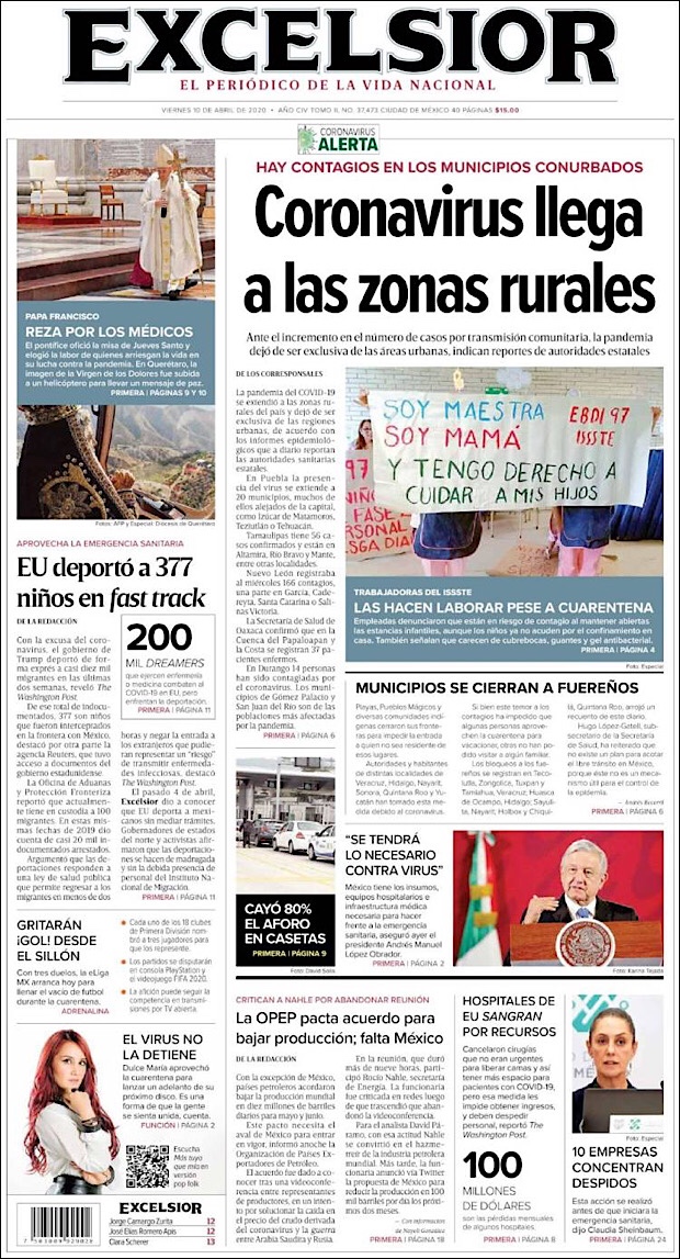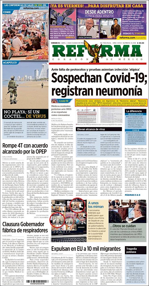PRIMERAS PLANAS EN MEXICO DEL 10 DE ABRIL DE 2020 Publicado porNotimexpr10 abril, 2020Publicado en Nacional, Sin categoría Compártelo:TweetMe gusta Cargando... Relacionado