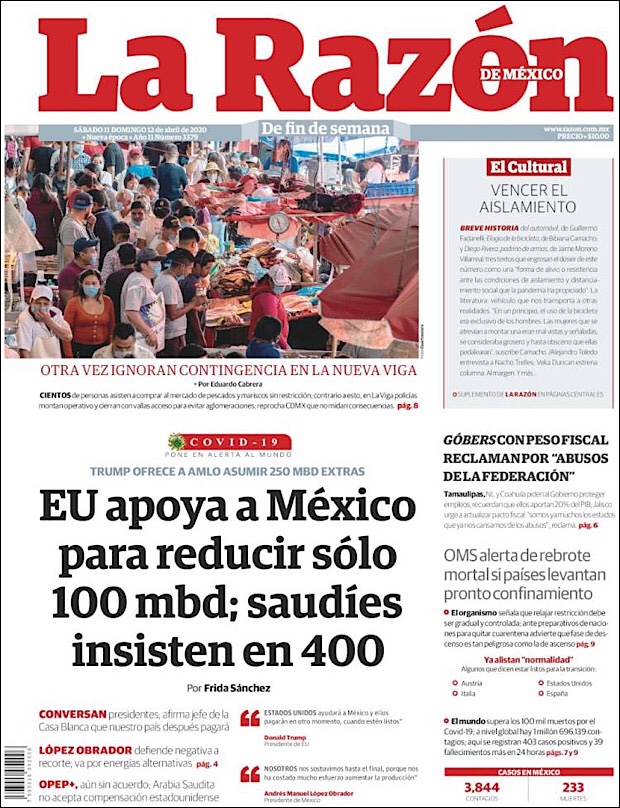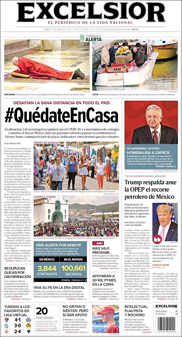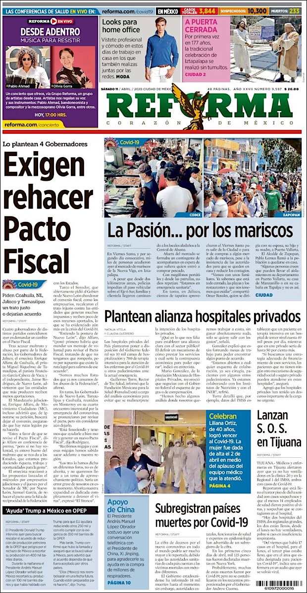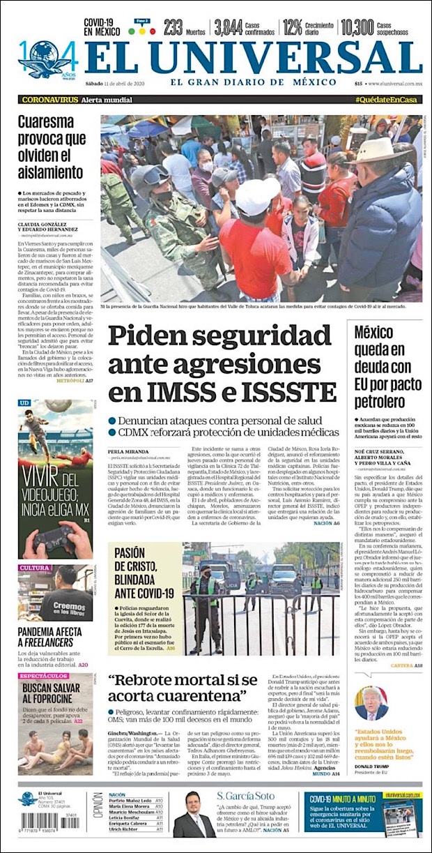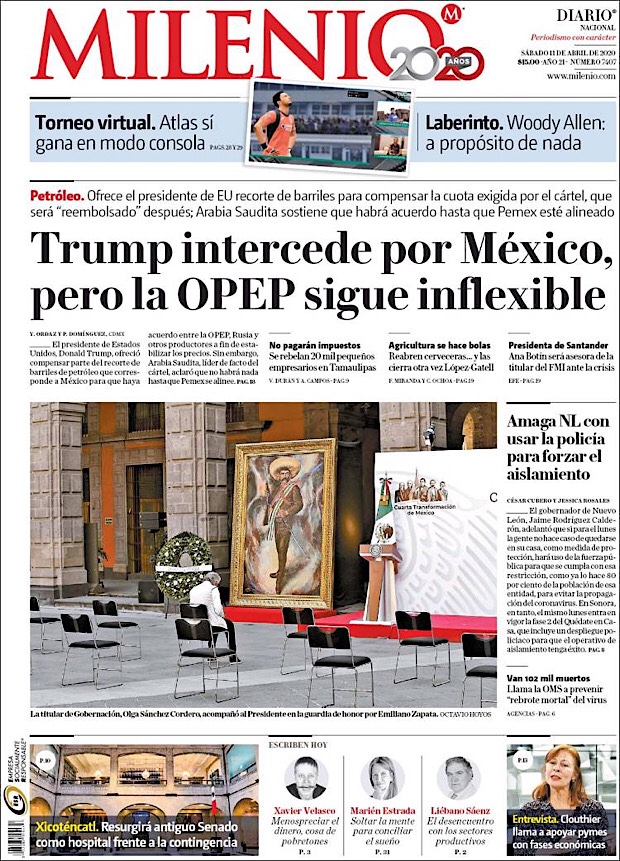 PRIMERAS PLANAS EN MEXICO DEL 11 DE ABRIL DE 2020 Publicado porNotimexpr11 abril, 2020Publicado en Nacional, Sin categoría Compártelo:TweetMe gusta Cargando... Relacionado