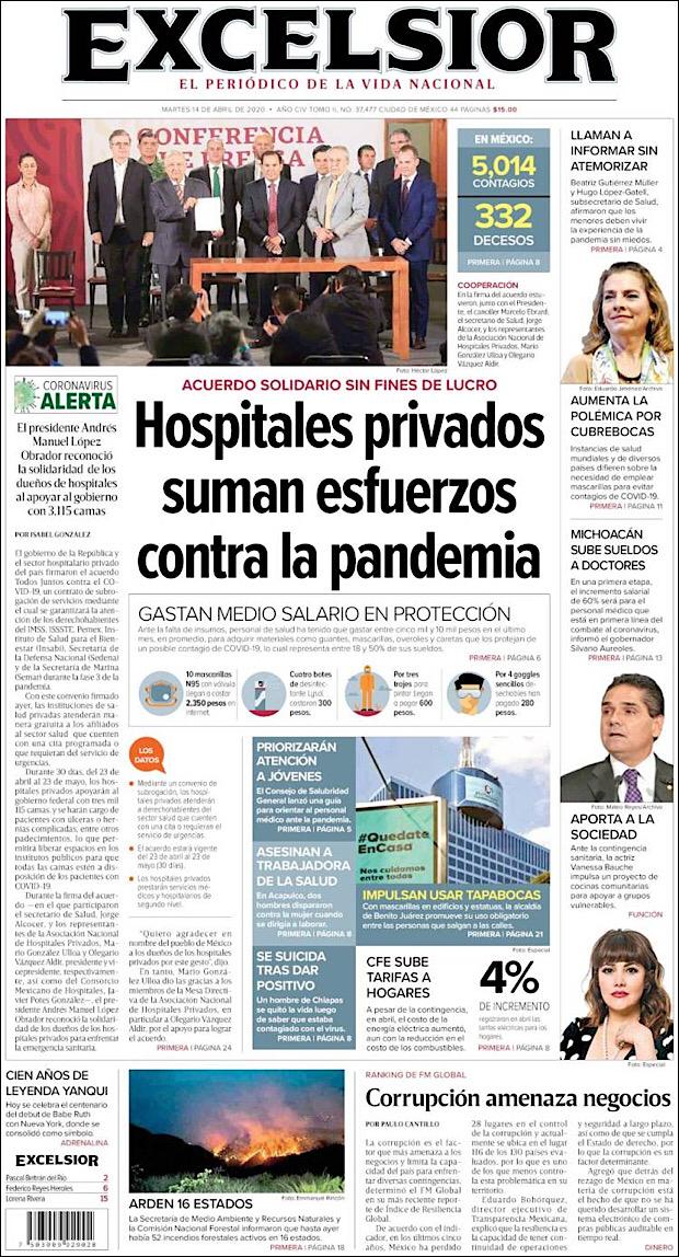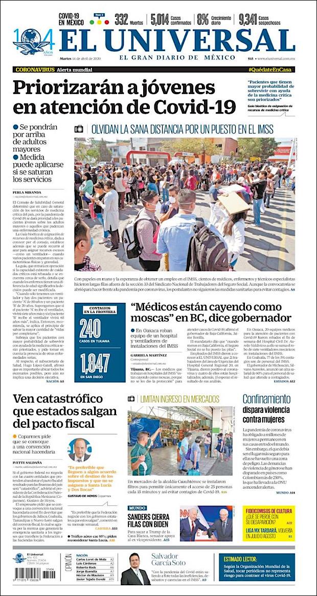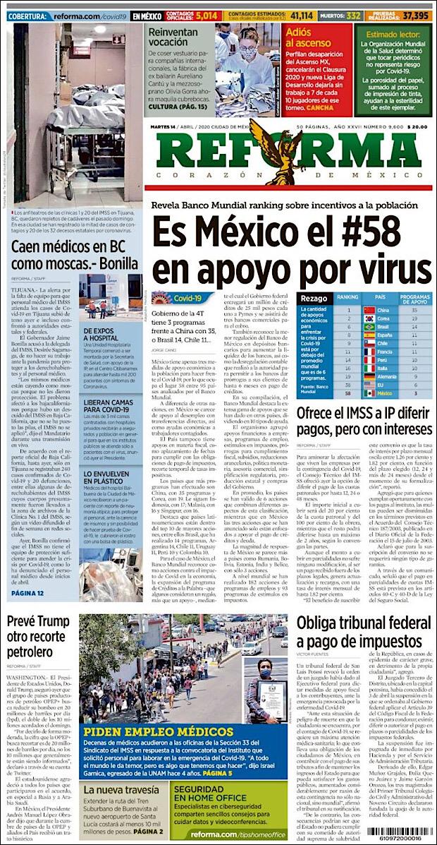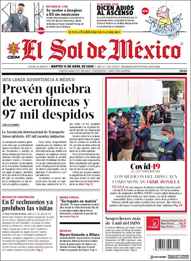 PRIMERAS PLANAS EN MEXICO DEL 14 DE ABRIL DE 2020 Publicado porNotimexpr14 abril, 202014 abril, 2020Publicado en Nacional, Sin categoría Compártelo:TweetMe gusta Cargando... Relacionado