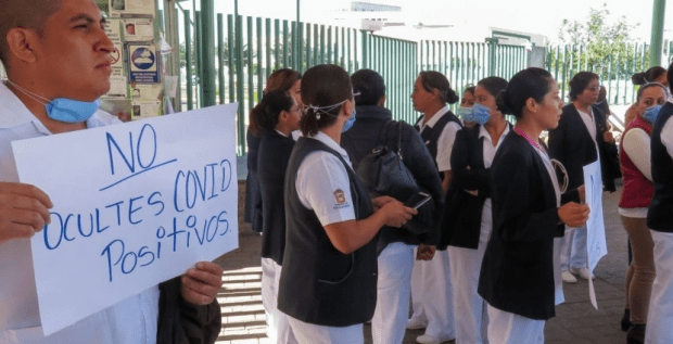 Durante este lunes, trabajadores del Hospital 1 de Octubre del ISSSTE en la Ciudad de México, protestaron debido a la falta de insumos con los que se cuenta pese a la emergencia sanitaria que se afronta.
