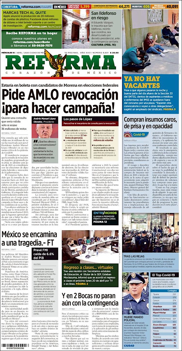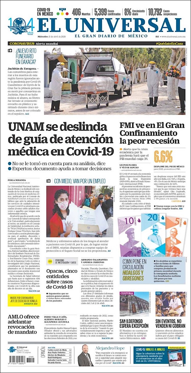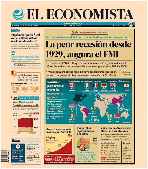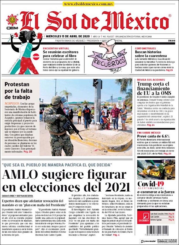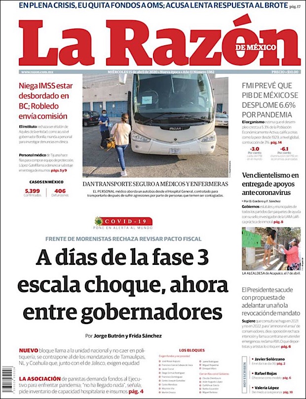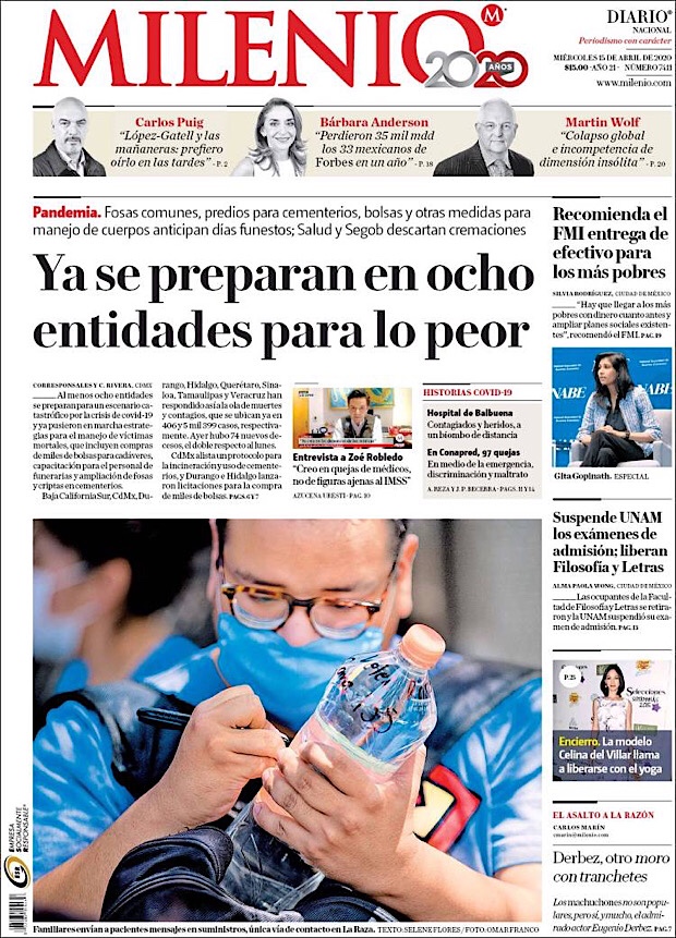PRIMERAS PLANAS EN MEXICO DEL 15 DE ABRIL DE 2020 Publicado porNotimexpr15 abril, 202015 abril, 2020Publicado en Nacional, Sin categoría Compártelo:TweetMe gusta Cargando... Relacionado