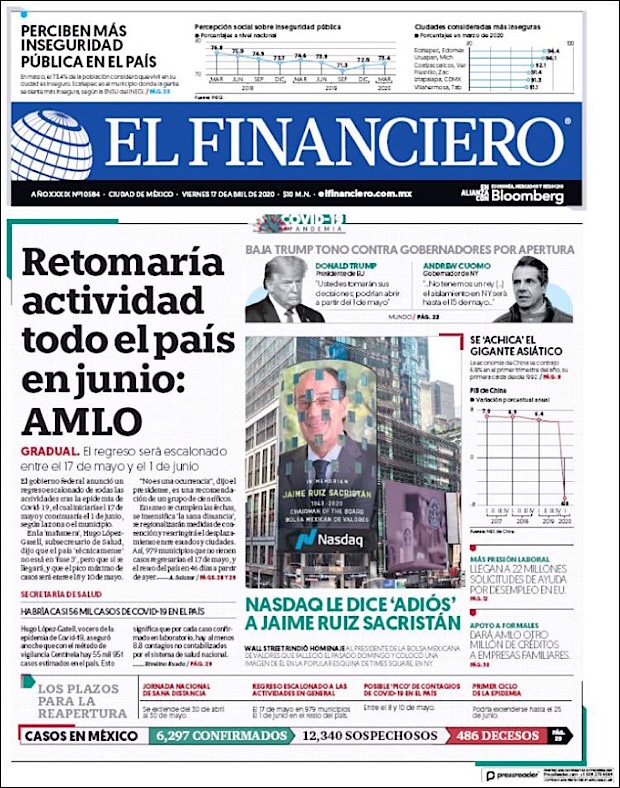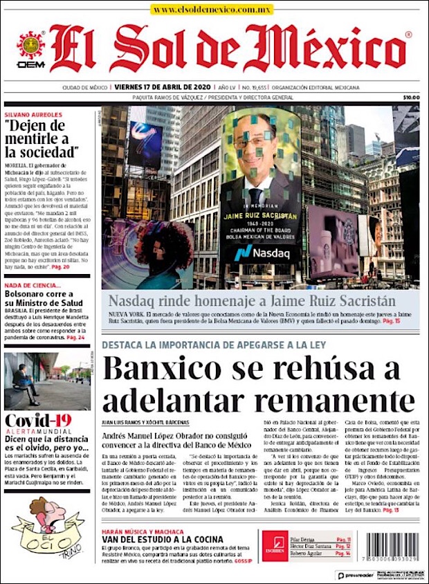 PRIMERAS PLANAS EN MEXICO DEL 17 DE ABRIL DE 2020 Publicado porNotimexpr17 abril, 2020Publicado en Nacional, Sin categoría Compártelo:TweetMe gusta Cargando... Relacionado