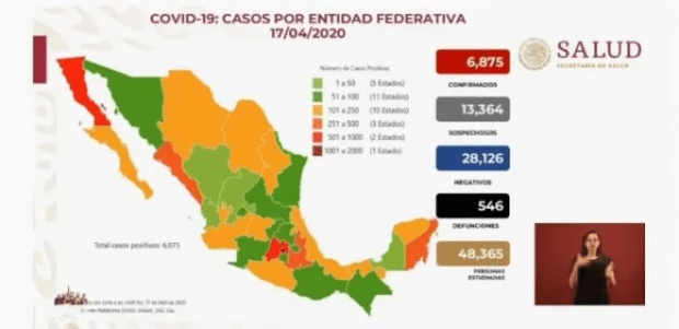 Las autoridades sanitarias de México informaron este viernes que el saldo de muertes por la epidemia de coronavirus en el país es de 546 fallecimientos. Los casos positivos al COVID-19, por su parte, ya son 6,875.