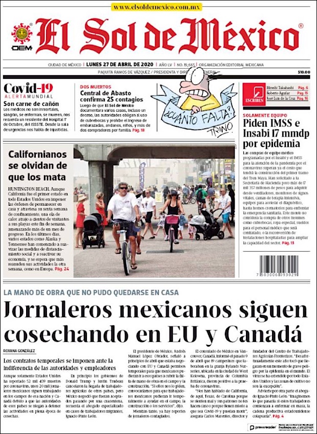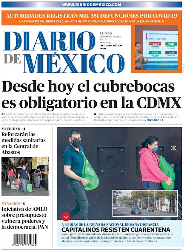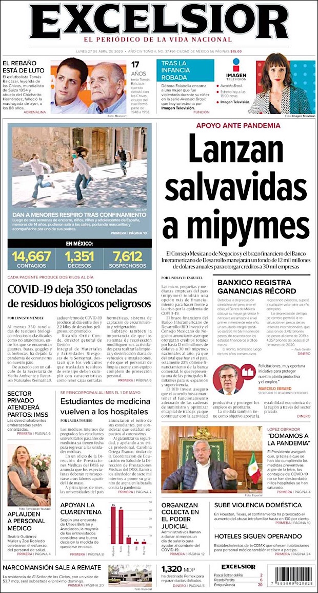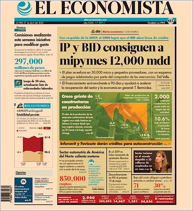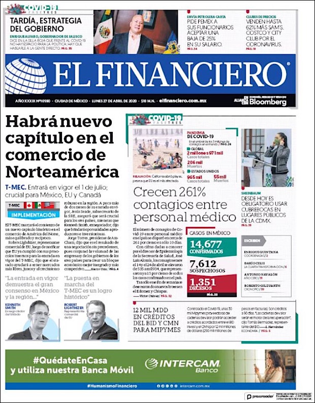PRIMERAS PLANAS EN MEXICO DEL 27 DE ABRIL DE 2020 Publicado porNotimexpr27 abril, 2020Publicado en Nacional, Sin categoría Compártelo:TweetMe gusta Cargando... Relacionado