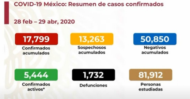 Este miércoles, el director de Epidemiología, Jose Luis Alomía, dio a conocer que en México hay 17,799 casos confirmados y 1,732 defunciones por coronavirus.