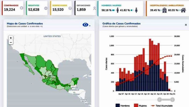 No obstante, a través de Comunicado Técnico Diario, la Secretaría de Salud (Ssa) dio a conocer que, hasta este jueves, en México hay 19,224 casos confirmados por COVID-19 y 1,859 defunciones.