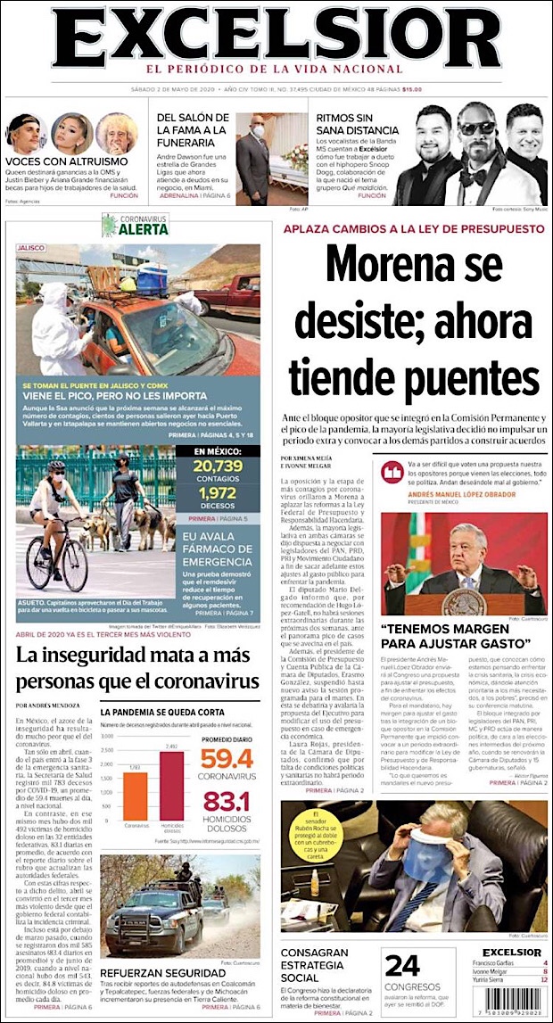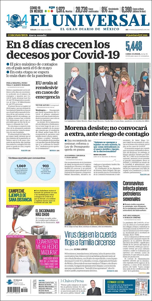 PRIMERAS PLANAS EN MEXICO DEL 2 DE MAYO DE 2020 Publicado porNotimexpr2 mayo, 2020Publicado en Nacional, Sin categoría Compártelo:TweetMe gusta Cargando... Relacionado