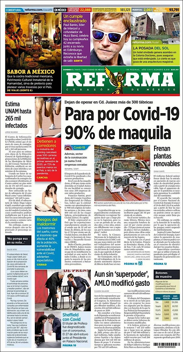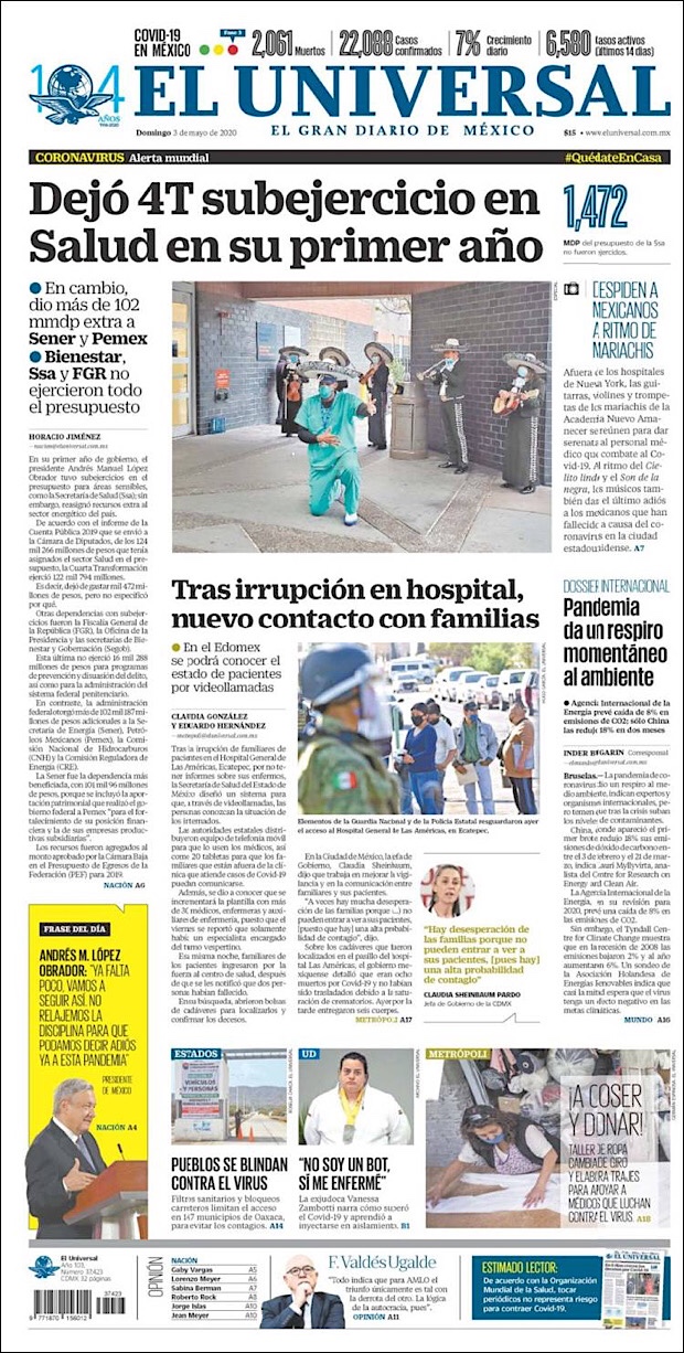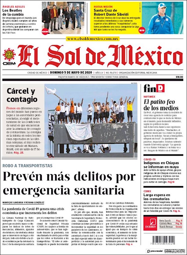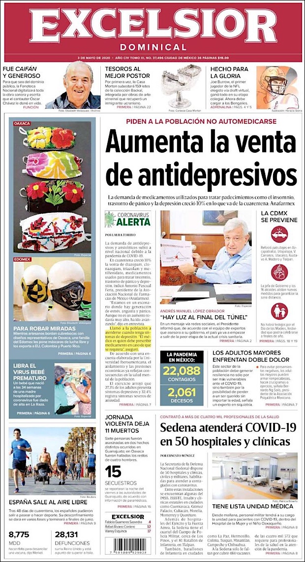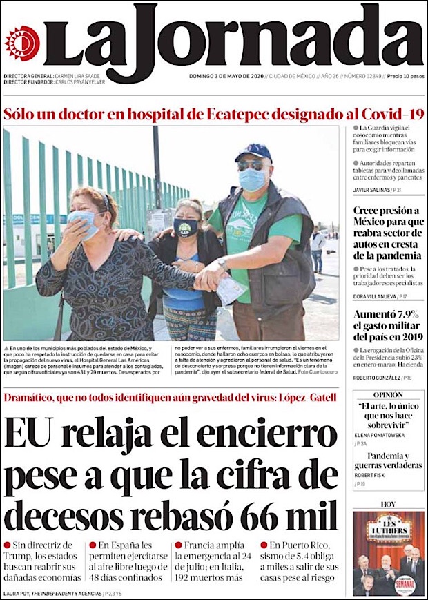 PRIMERAS PLANAS EN MEXICO DEL 3 DE MAYO DE 2020 Publicado porNotimexpr3 mayo, 2020Publicado en Nacional, Sin categoría Compártelo:TweetMe gusta Cargando... Relacionado