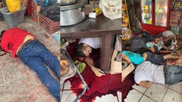 Los cuerpos de las víctimas quedaron dentro y fuera de la tienda de abarrotes donde se registraron los sangrientos hechos.