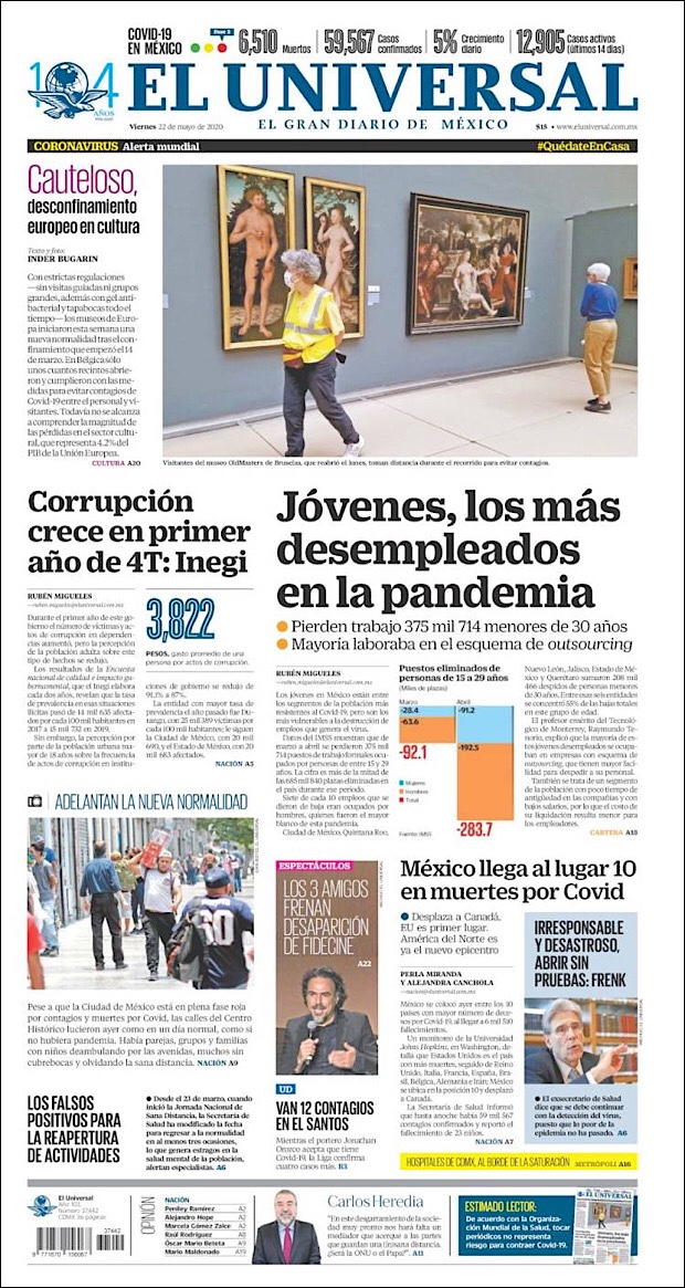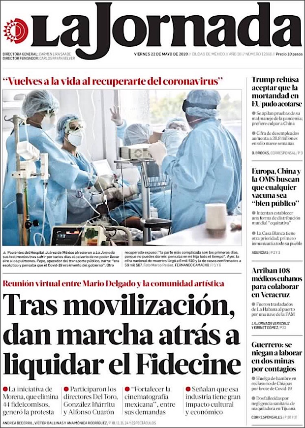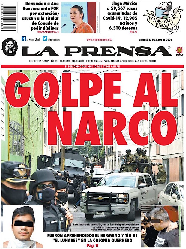 PRIMERAS PLANAS EN MEXICO Y EL MUNDO DEL 22 DE MAYO DE 2020 Publicado porNotimexpr22 mayo, 2020Publicado en Nacional, Sin categoría Compártelo:TweetMe gusta Cargando... Relacionado