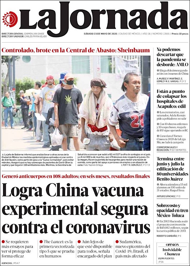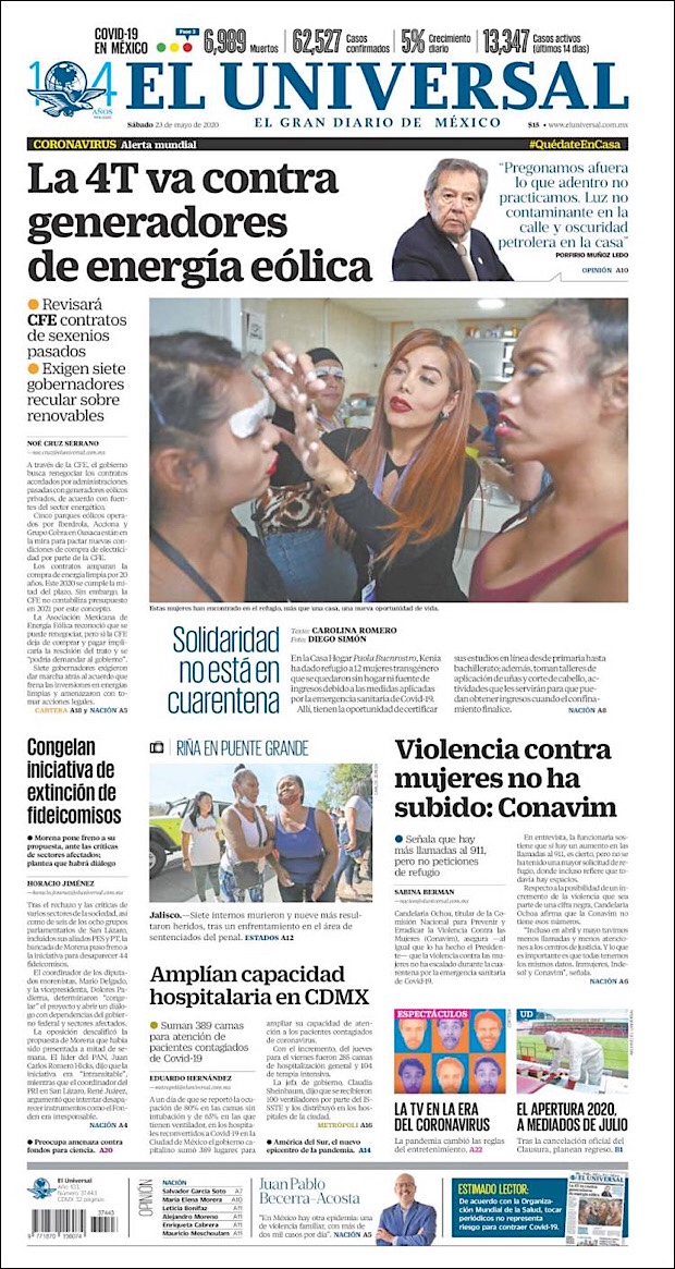 PRINERAS PLANAS EN MEXICO Y EL MUNDO DEL 23 DE MAYO DE 2020 Publicado porNotimexpr23 mayo, 2020Publicado en Nacional, Sin categoría Compártelo:TweetMe gusta Cargando... Relacionado