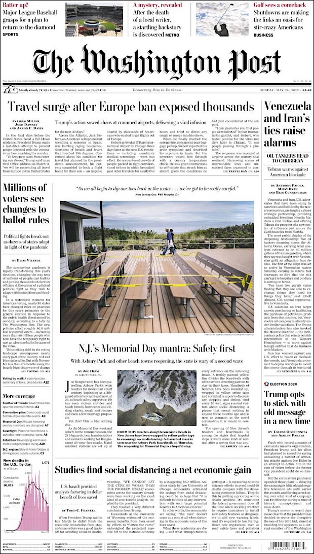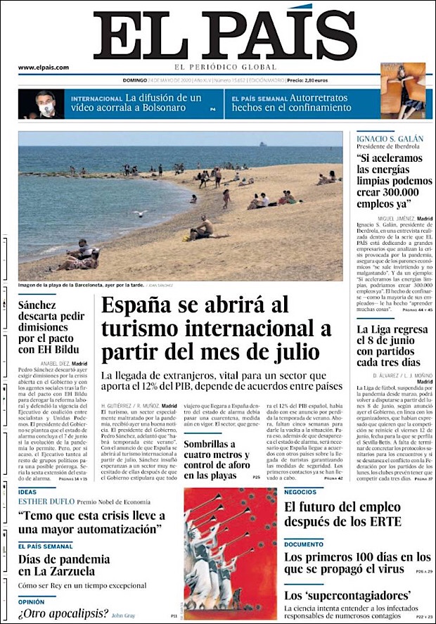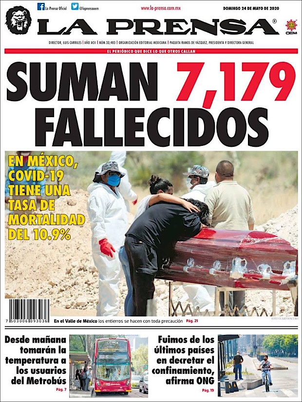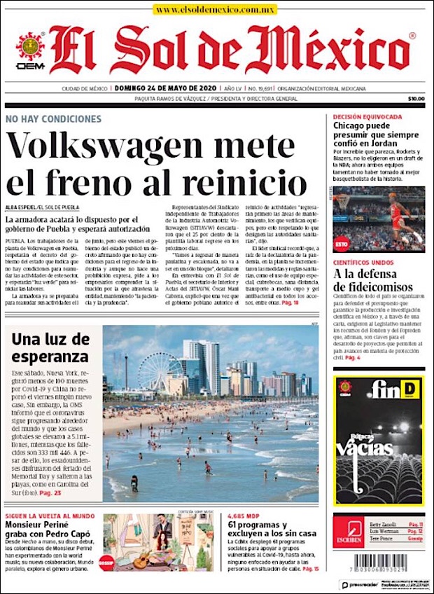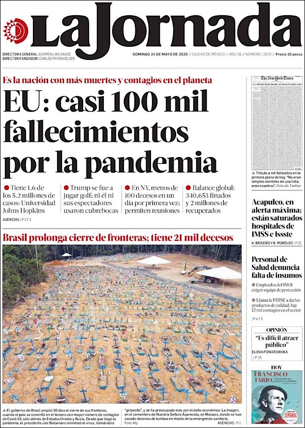 PRIMERAS PLANAS EN MEXICO Y EL MUNDO DEL 24 DE MAYO DE 2020 Publicado porNotimexpr24 mayo, 2020Publicado en Nacional, Sin categoría Compártelo:TweetMe gusta Cargando... Relacionado