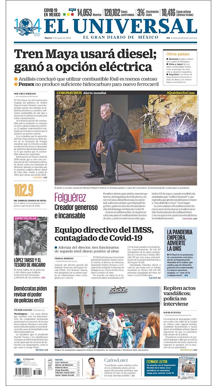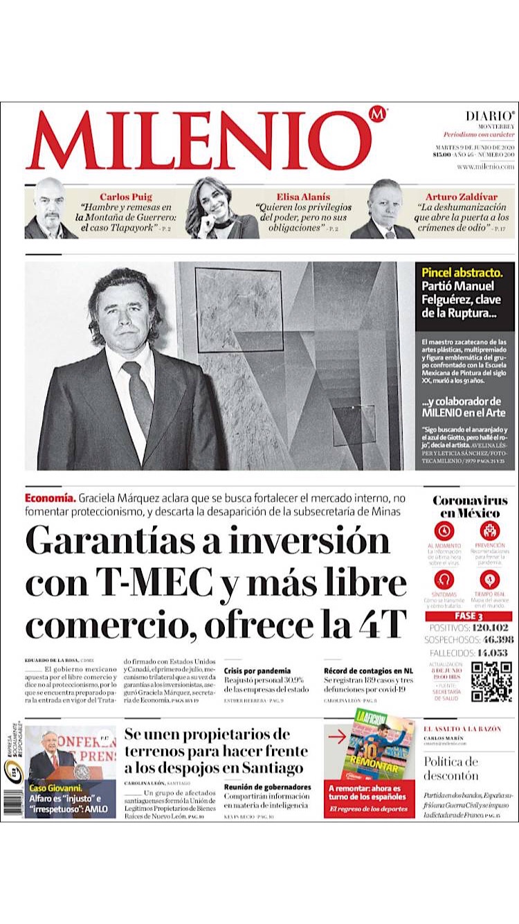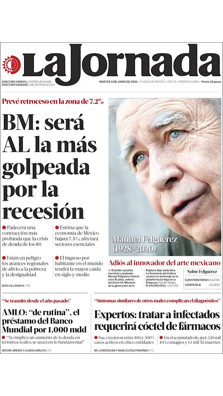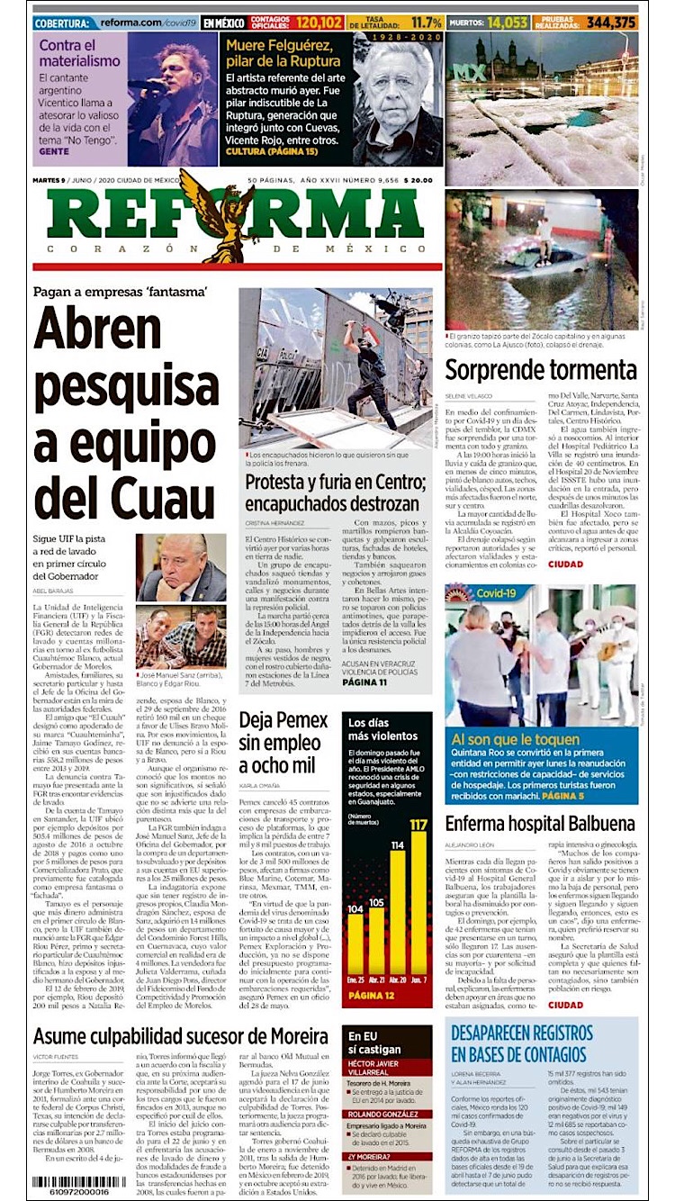 PRIMERAS PLANAS EN MEXICO Y EL MUNDO DEL 9 DE JUNIO DE 2020 Publicado porNotimexpr9 junio, 20209 junio, 2020Publicado en Nacional, Sin categoría Compártelo:TweetMe gusta Cargando... Relacionado