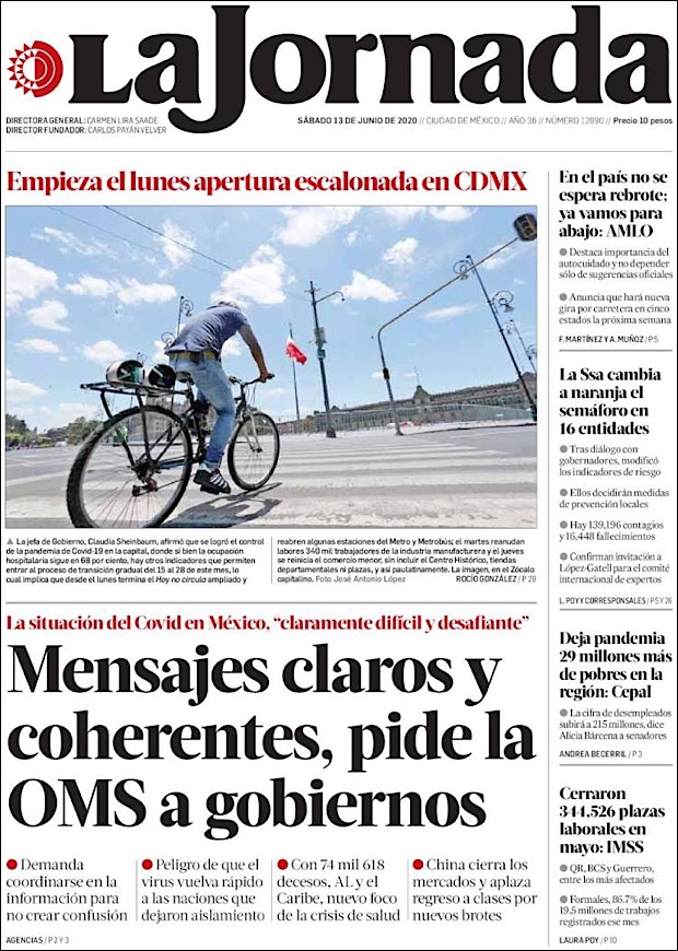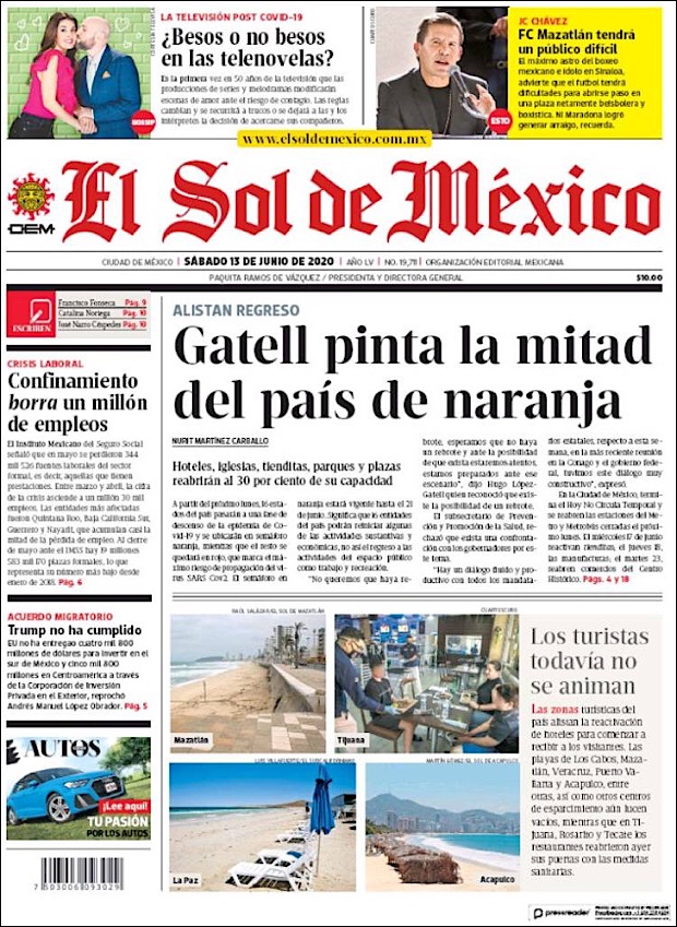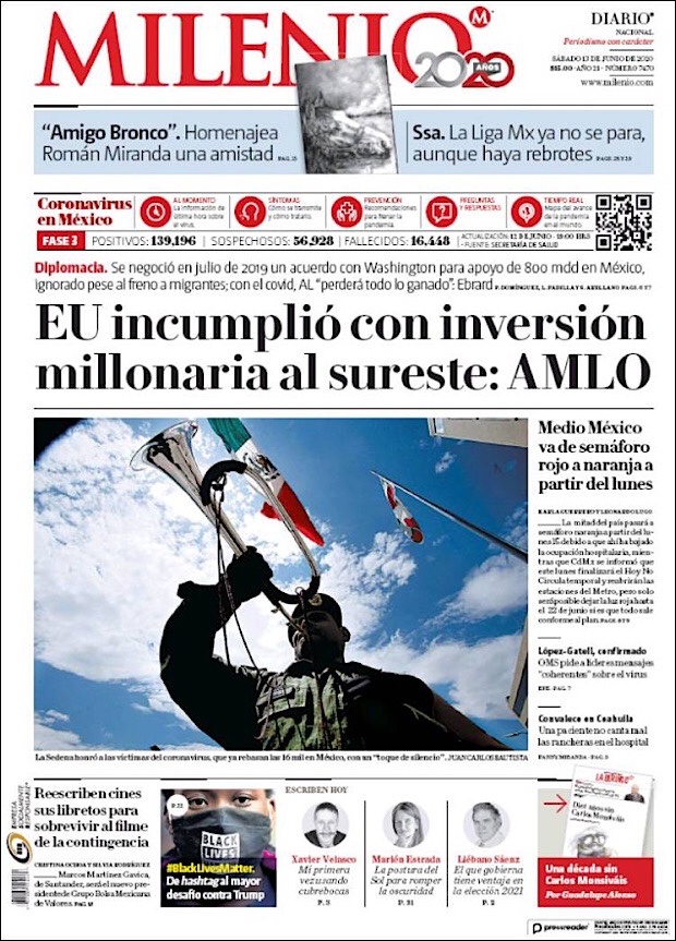 PRIMERAS PLANAS EN MEXICO Y EL MUNDO DEL 13 DE JUNIO DE 2020 Publicado porNotimexpr13 junio, 2020Publicado en Internacional, Sin categoría Compártelo:TweetMe gusta Cargando... Relacionado