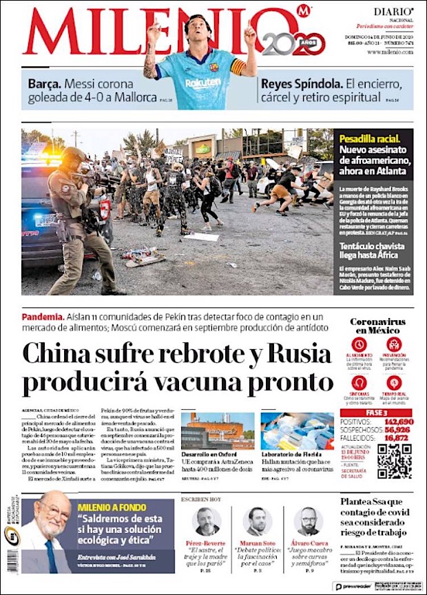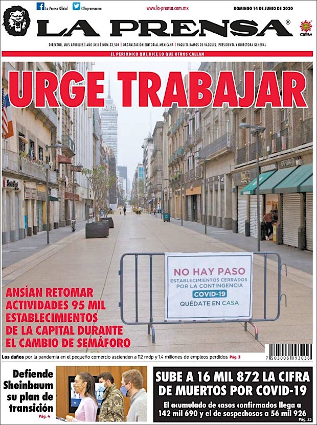 PRIMERAS PLANAS EN MEXICO Y EL MUNDO DEL 14 DE JUNIO DE 2020 Publicado porNotimexpr14 junio, 2020Publicado en Nacional, Sin categoría Compártelo:TweetMe gusta Cargando... Relacionado