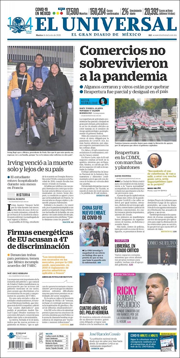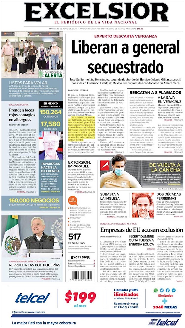 PRIMERAS PLANAS EN MEXICO Y EL MUNDO DEL 16 DE JUNIO DE 2020 Publicado porNotimexpr16 junio, 2020Publicado en Nacional, Sin categoría Compártelo:TweetMe gusta Cargando... Relacionado