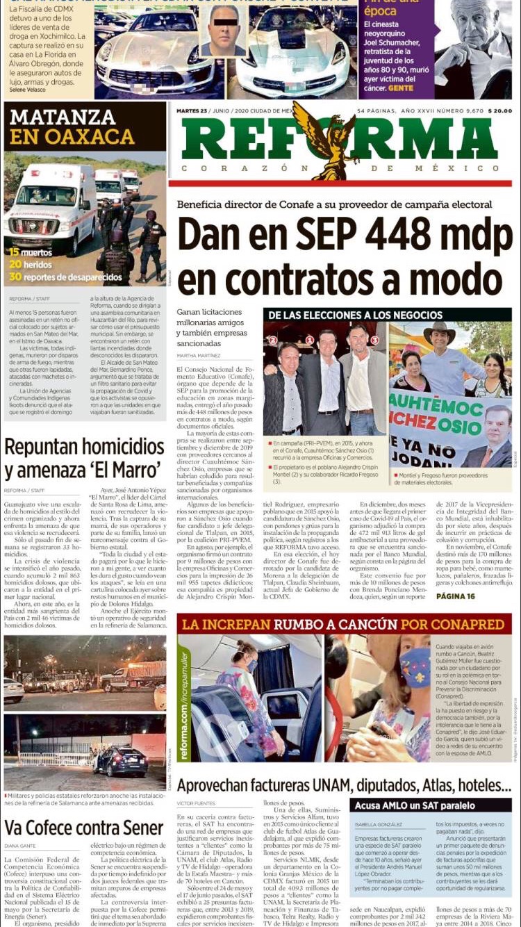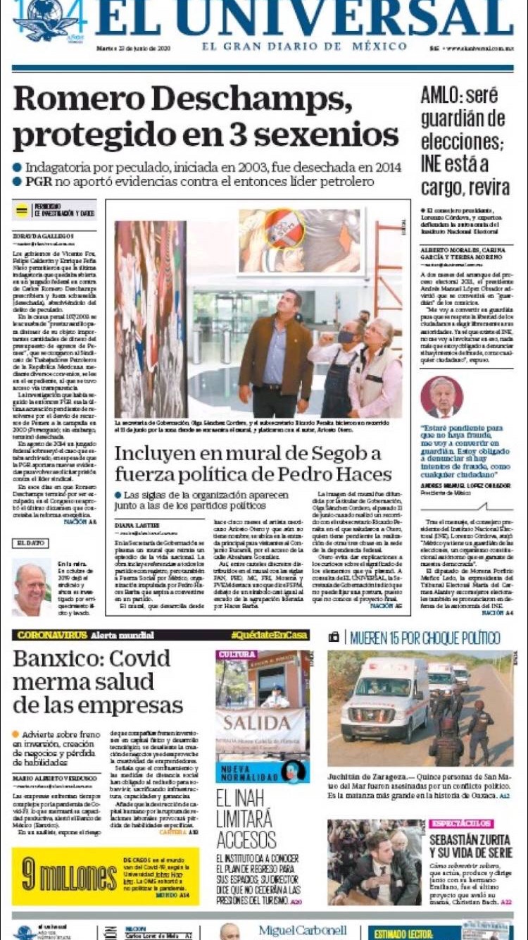 PRIMERAS PLANAS EN MEXICO Y EL MUNDO DEL 23 DE JUNIO DE 2020 Publicado porNotimexpr23 junio, 2020Publicado en Internacional, Sin categoría Compártelo:TweetMe gusta Cargando... Relacionado