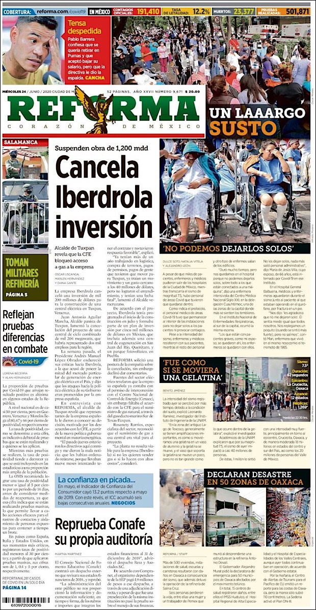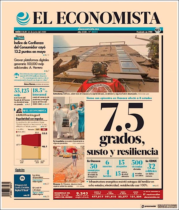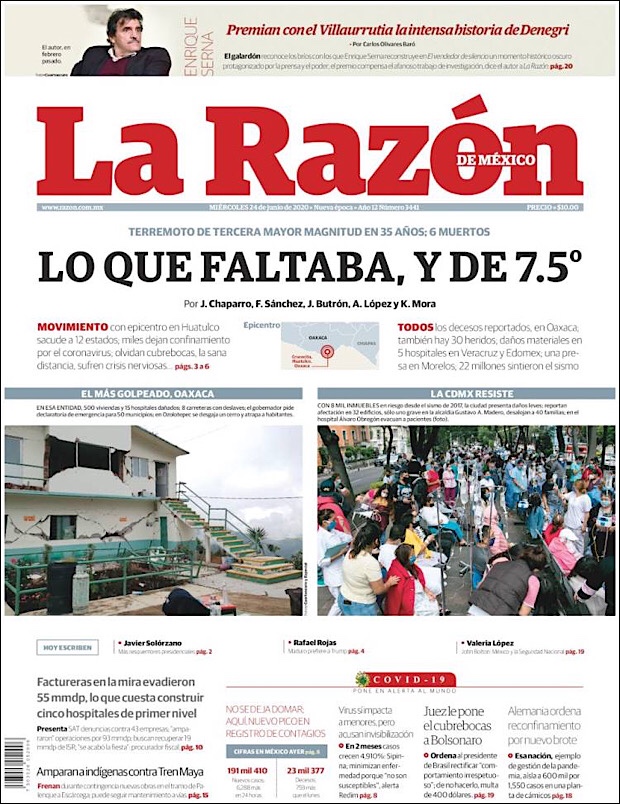 PRIMERAS PLANAS EN MEXICO Y EL MUNDO DEL 24 DE JUNIO DE 2020 Publicado porNotimexpr24 junio, 2020Publicado en Internacional, Sin categoría Compártelo:TweetMe gusta Cargando... Relacionado