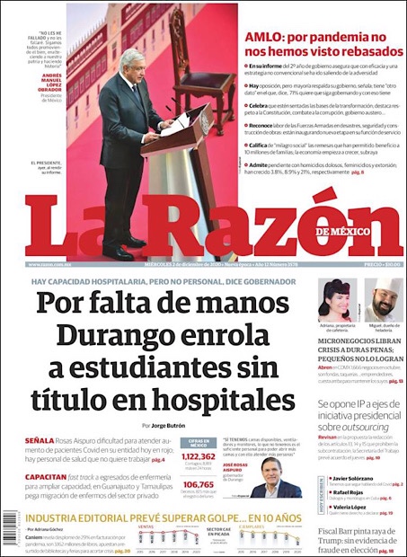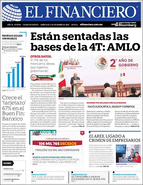 PRIMERAS PLANAS EN MEXICO Y EL MUNDO DEL 2 DE DICIEMBRE DE 2020 Publicado porNotimexpr2 diciembre, 2020Publicado en Internacional, Nacional, Sin categoría Compártelo:TweetMe gusta Cargando... Relacionado