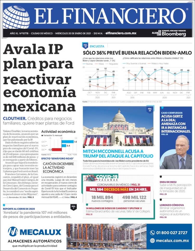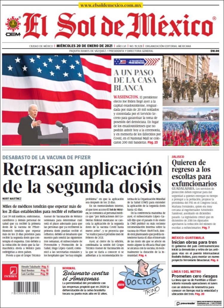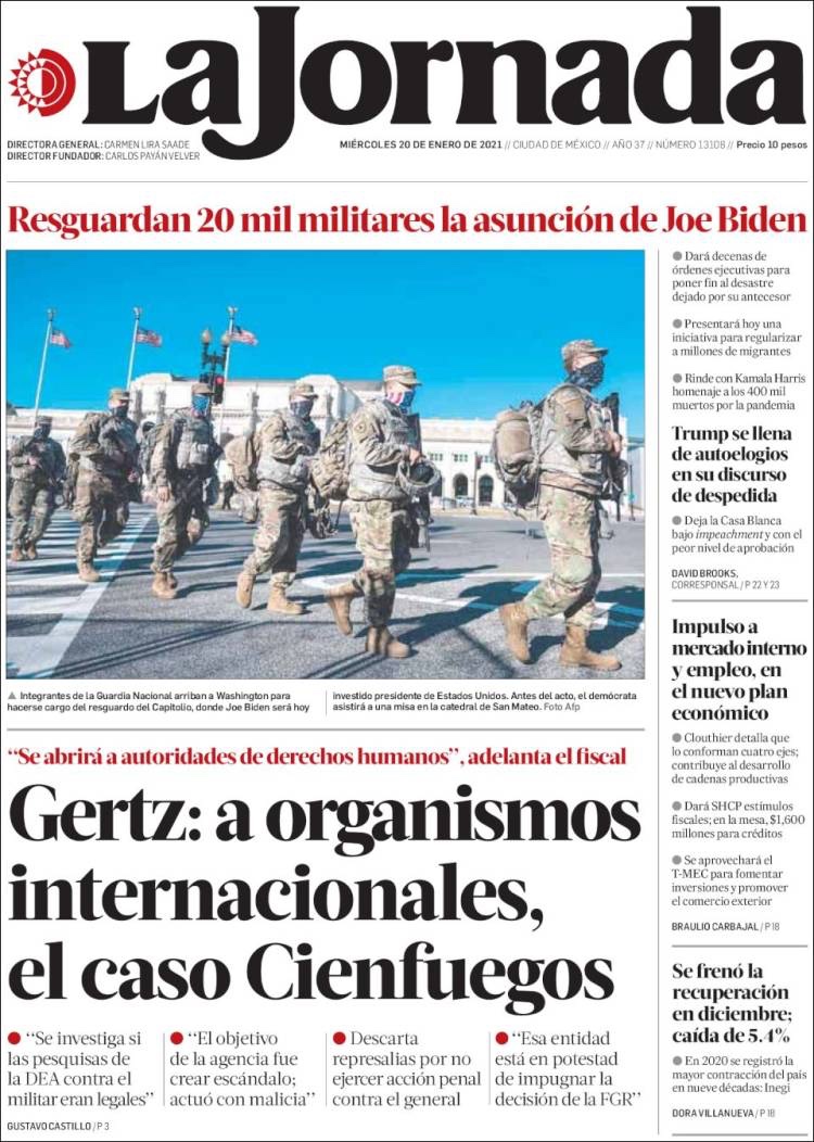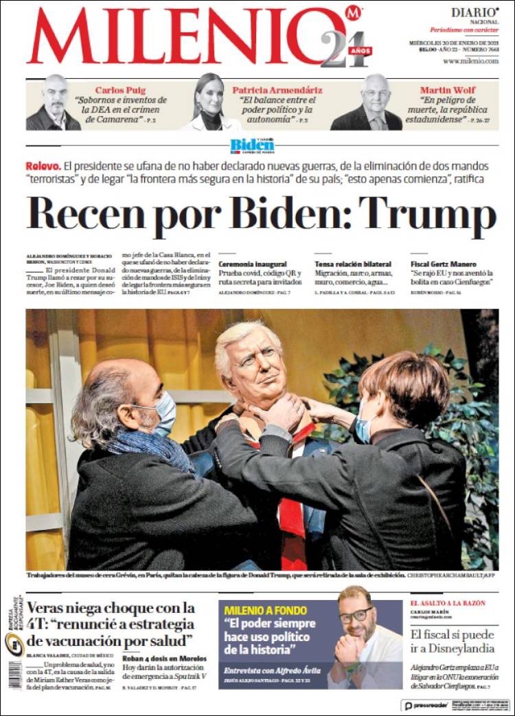 PRIMERAS PLANAS EN MEXICO Y EL MUNDO DEL 20 DE ENERO DE 2021 Publicado porNotimexpr20 enero, 2021Publicado en Internacional, Nacional, Sin categoría Compártelo:TweetMe gusta Cargando... Relacionado
