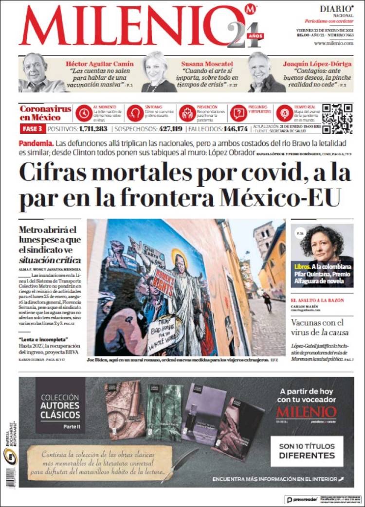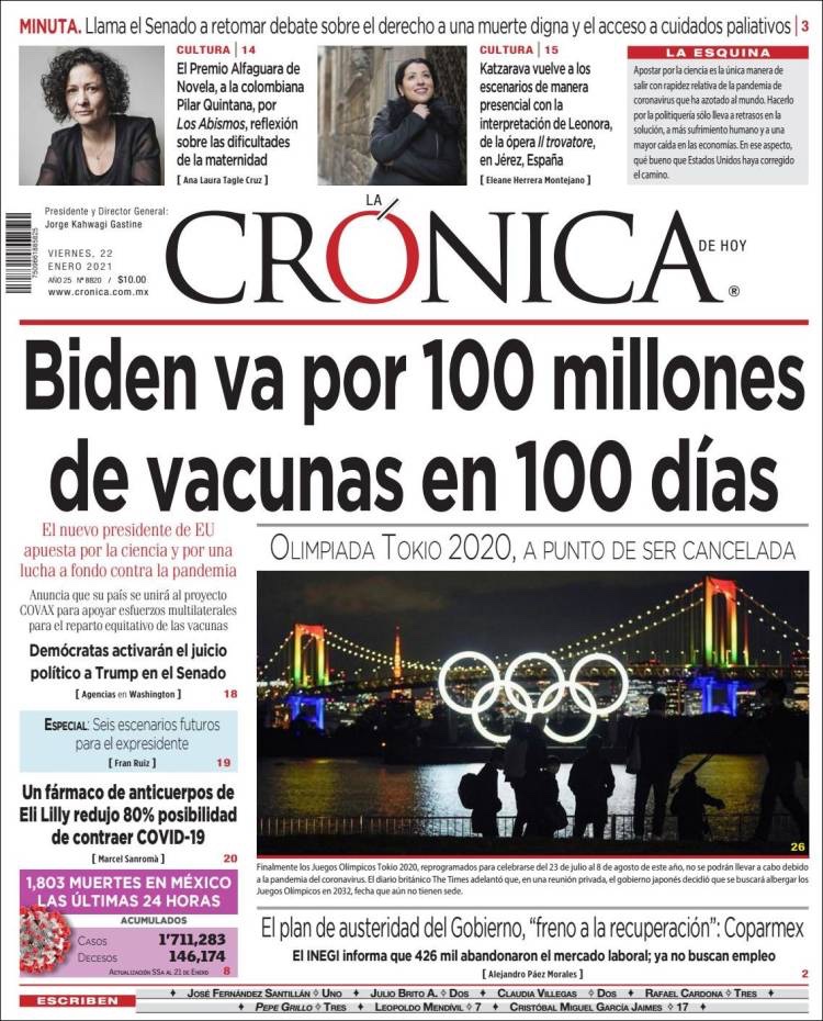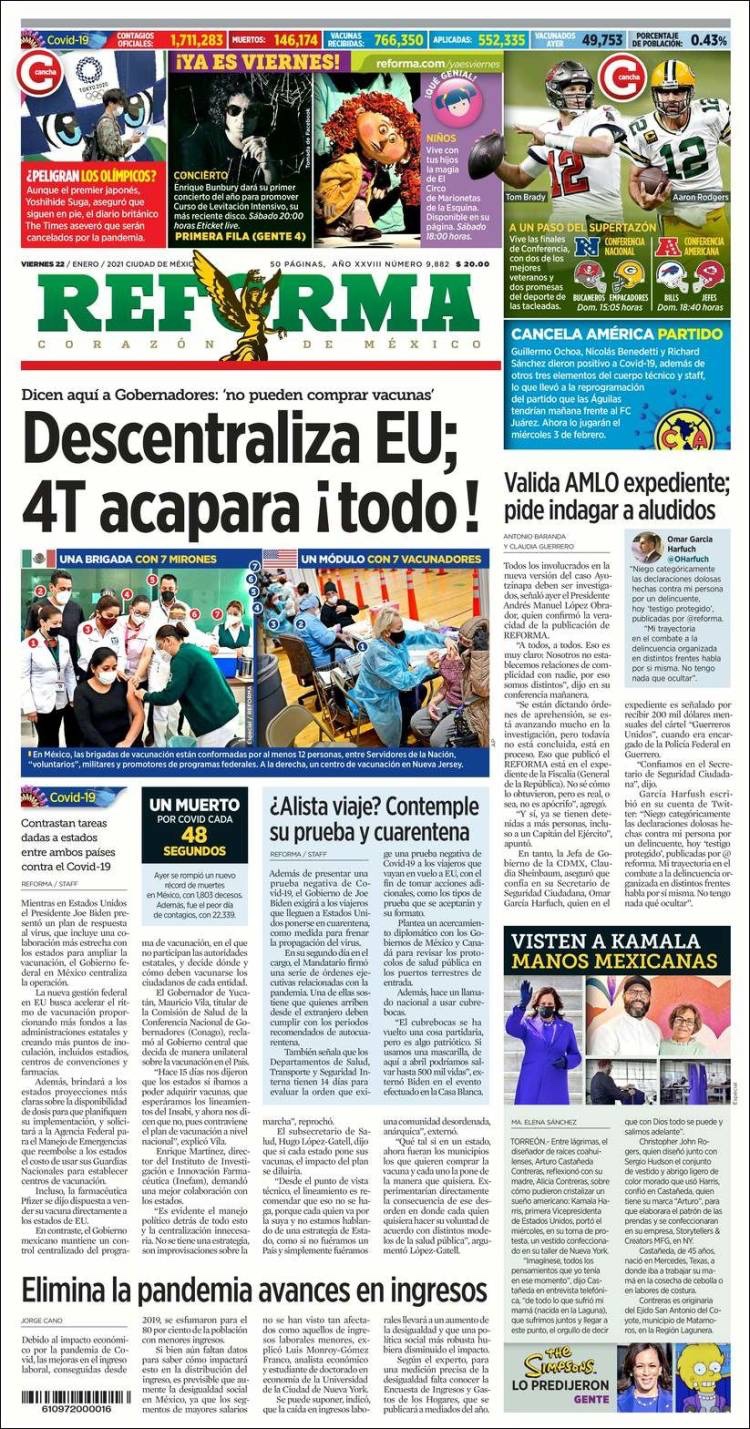 PRIMERAS PLANAS EN MEXICO Y EL MUNDO DEL 22 DE ENERO DE 2021 Publicado porNotimexpr22 enero, 202122 enero, 2021Publicado en Internacional, Nacional, Sin categoría Compártelo:TweetMe gusta Cargando... Relacionado