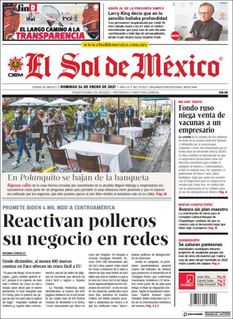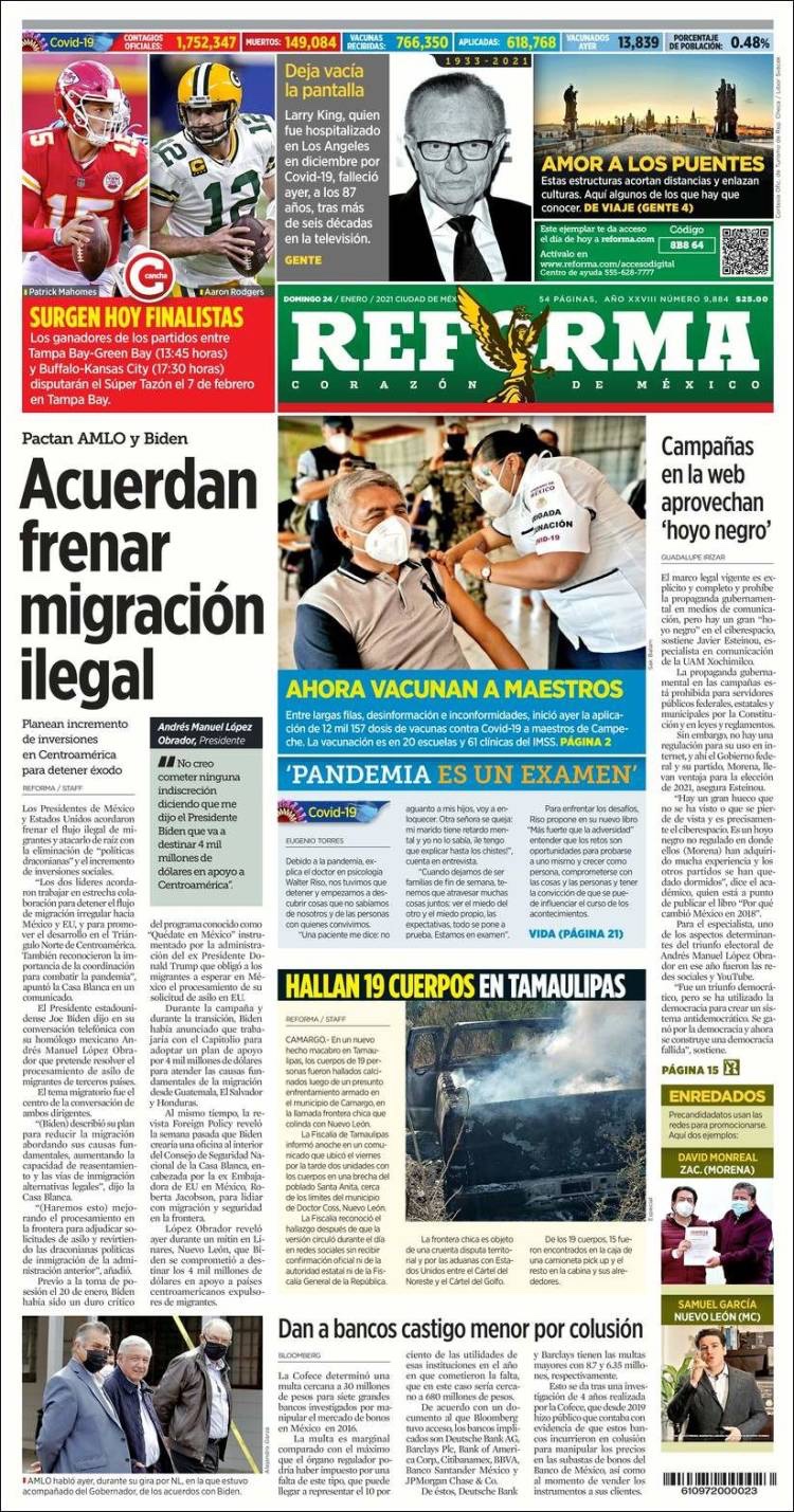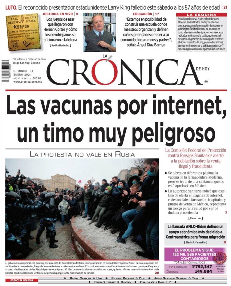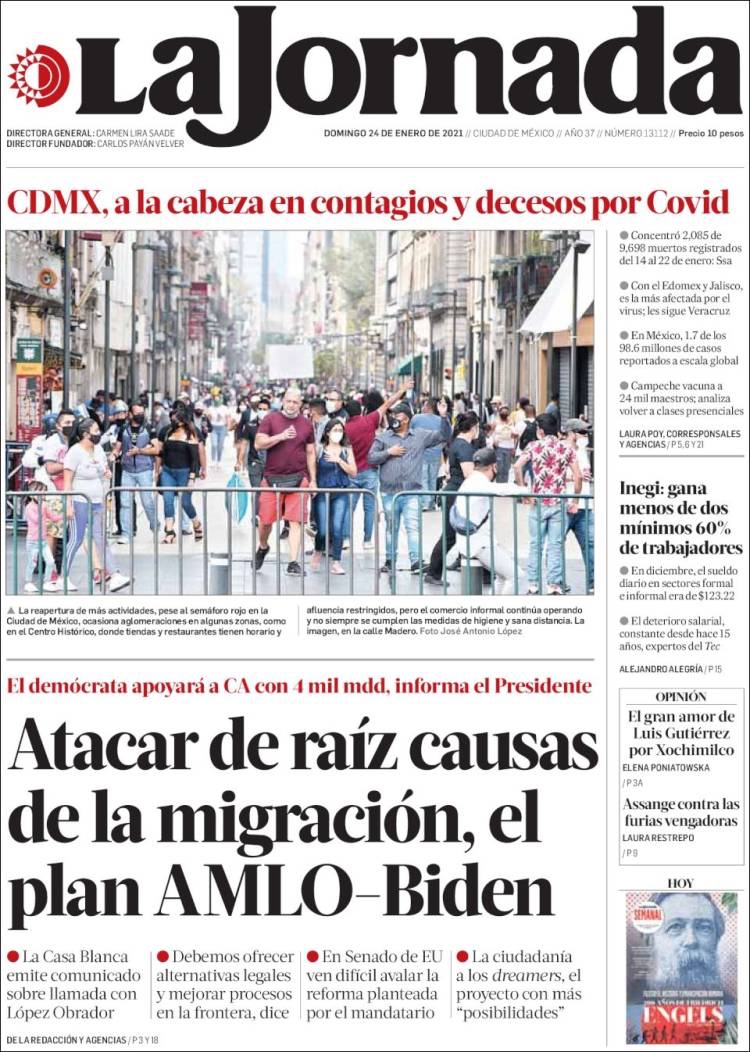 PRIMERAS PLANAS EN MEXICO Y EL MUNDO DEL 24 DE ENERO DE 2021 Publicado porNotimexpr24 enero, 2021Publicado en Internacional, Nacional, Sin categoría Compártelo:TweetMe gusta Cargando... Relacionado