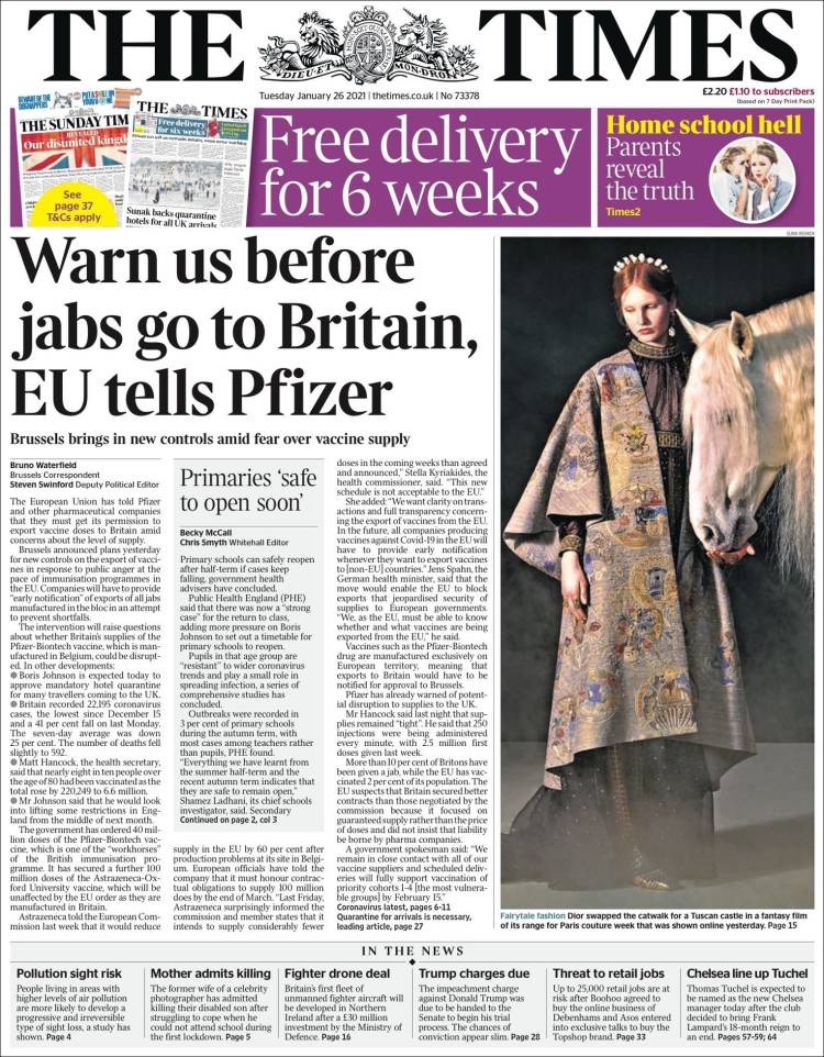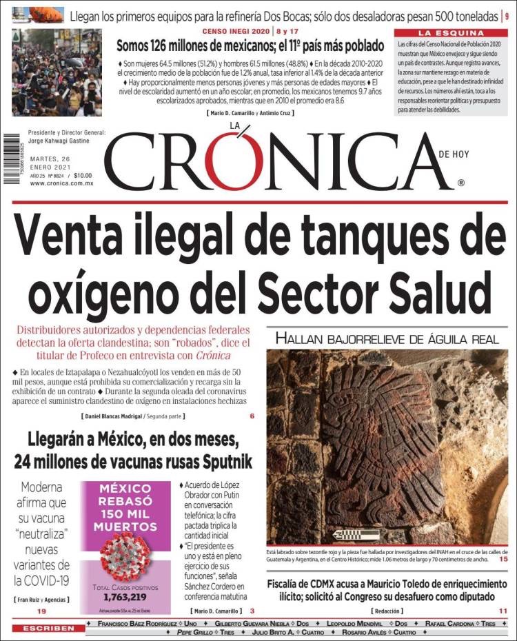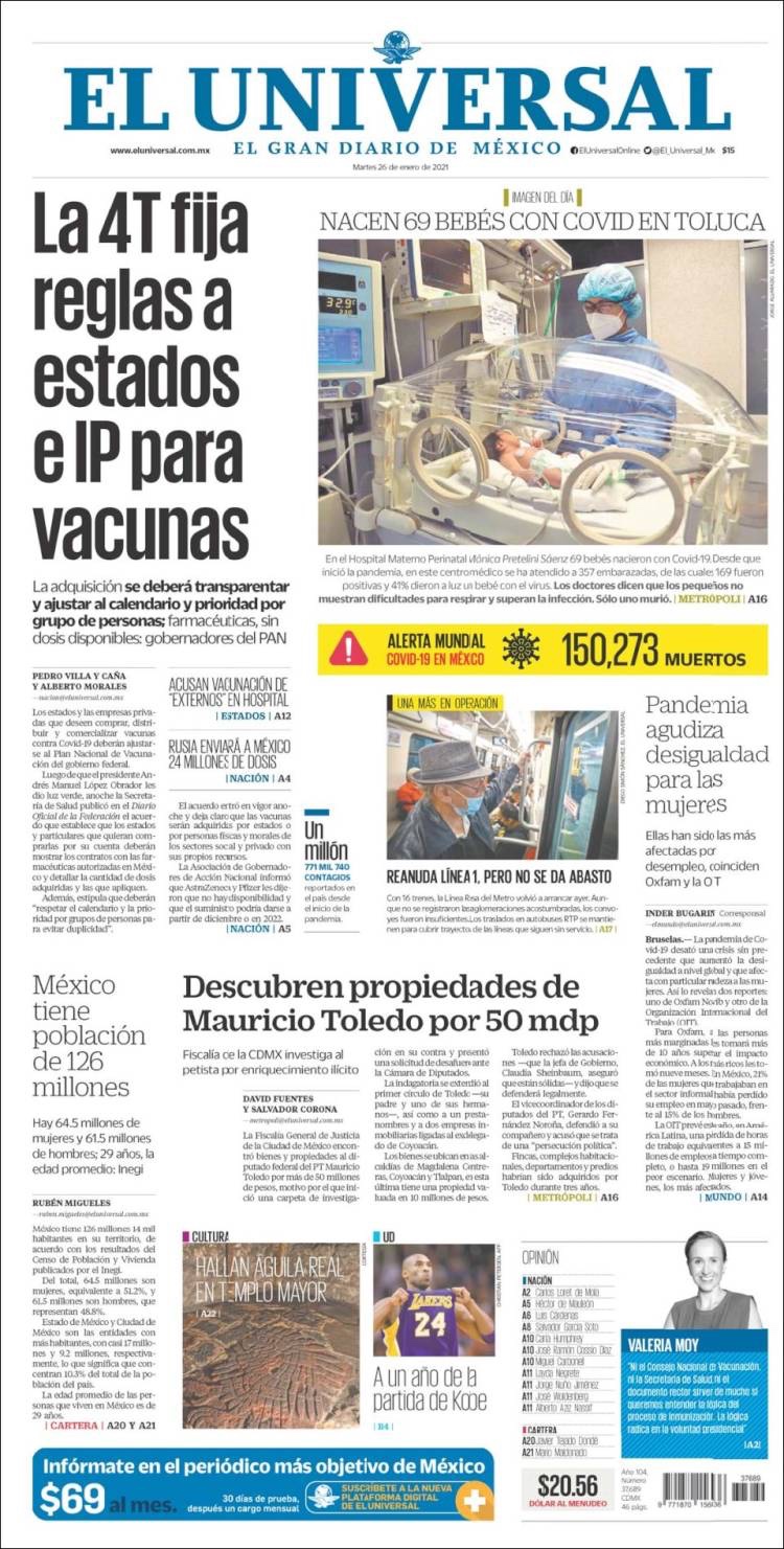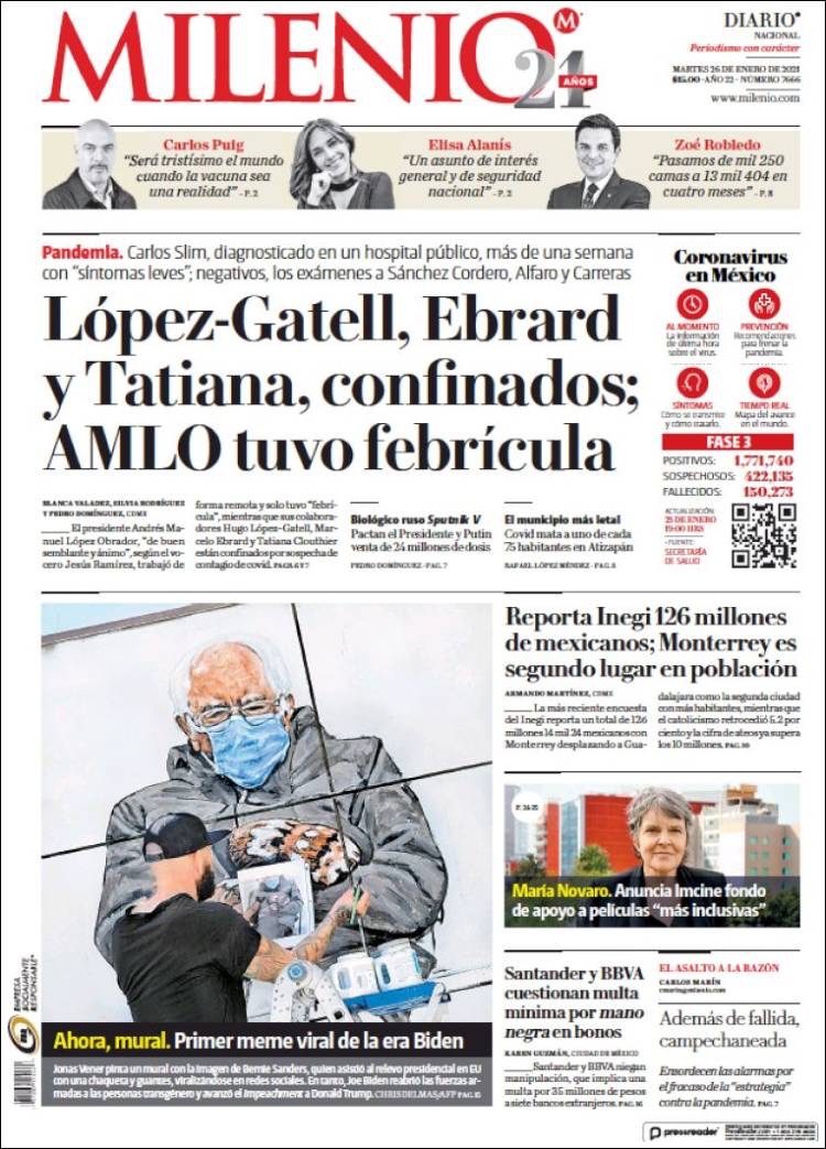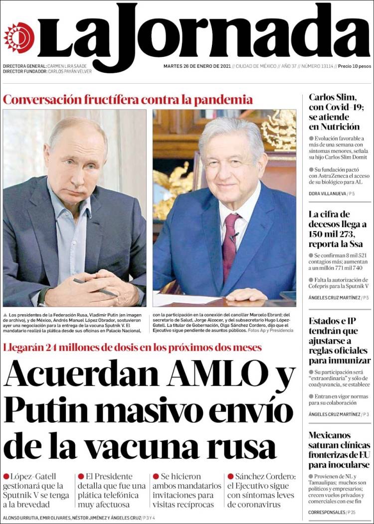 PRIMERAS PLANAS EN MEXICO Y EL MUNDO DEL 26 DE ENERO DE 2021 Publicado porNotimexpr26 enero, 2021Publicado en Internacional, Nacional, Sin categoría Compártelo:TweetMe gusta Cargando... Relacionado