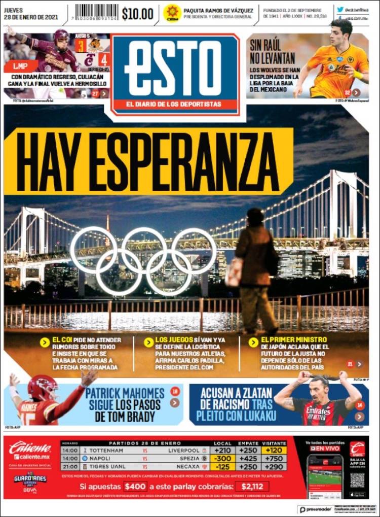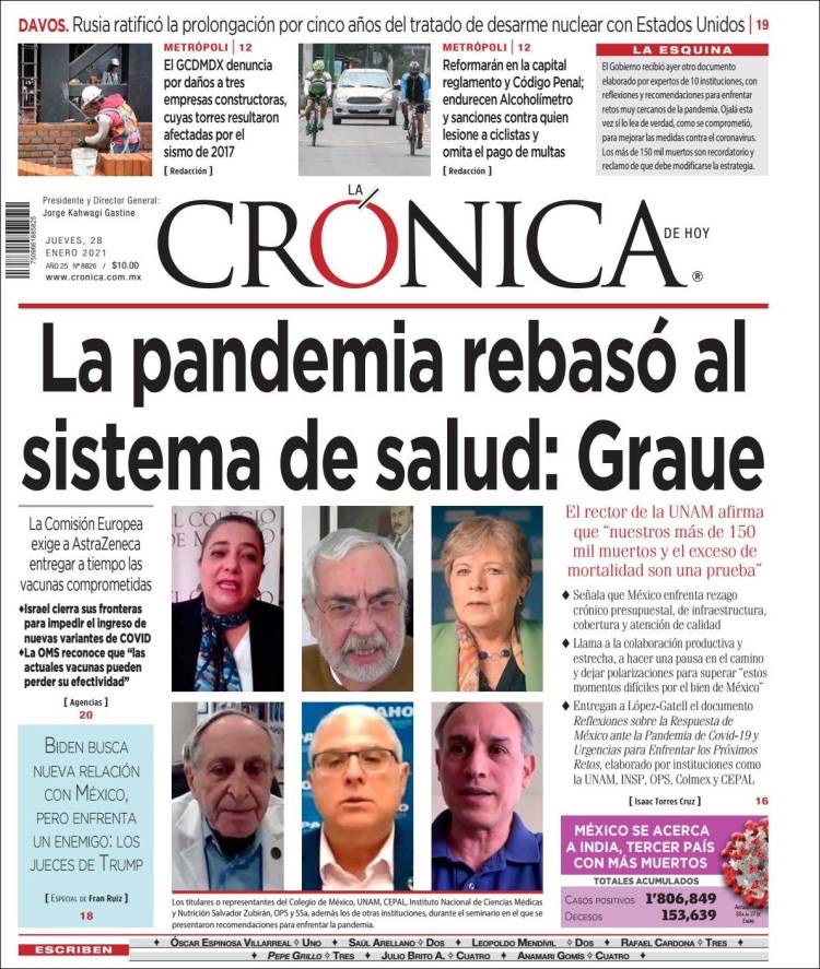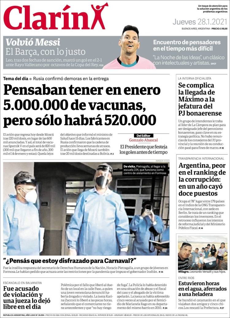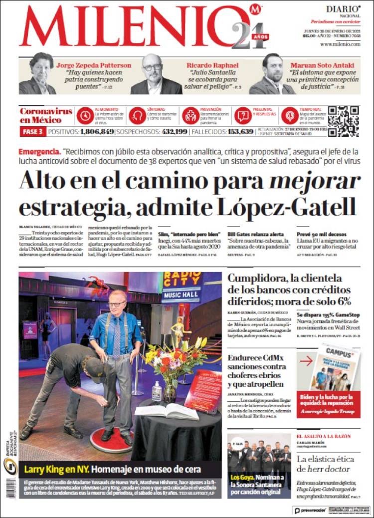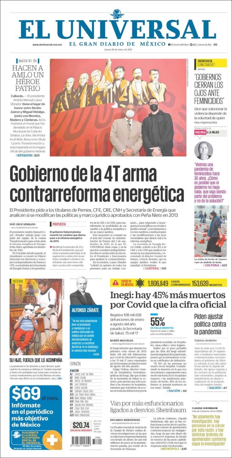 PRIMERAS PLANAS EN MEXICO Y EL MUNDO DEL 28 DE ENERO DE 2021 Publicado porNotimexpr28 enero, 2021Publicado en Internacional, Nacional, Sin categoría Compártelo:TweetMe gusta Cargando... Relacionado