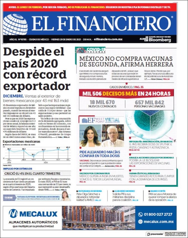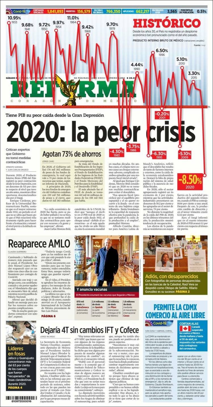 PRIMERAS PLANAS EN MEXICO Y EL MUNDO DEL 30 DE ENERO DE 2021 Publicado porNotimexpr30 enero, 2021Publicado en Internacional, Nacional, Sin categoría Compártelo:TweetMe gusta Cargando... Relacionado
