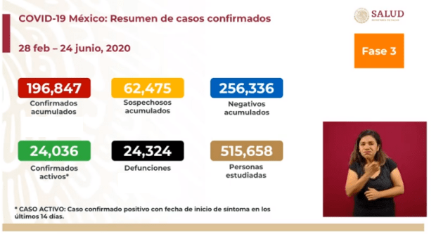 CORONAVIRUS EN MÉXICO AL 24 DE JUNIO: 24,324 MUERTOS Y 196,847 INFECTADOS