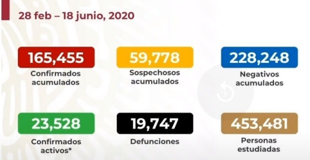 CORONAVIRUS EN MÉXICO AL 18 DE JUNIO: 19,747 MUERTOS Y 165,455 INFECTADOS