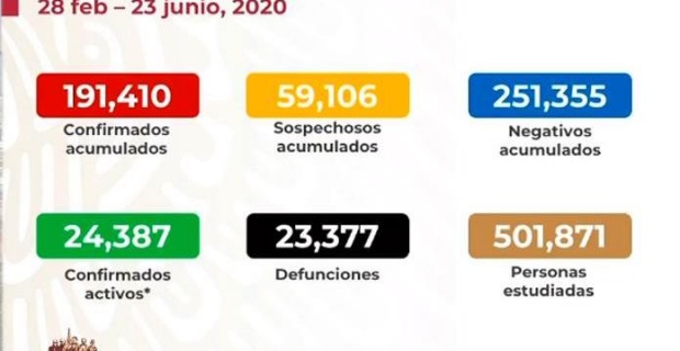 CORONAVIRUS EN MÉXICO AL 23 DE JUNIO: 23,377 MUERTOS Y 191,410 INFECTADOS
