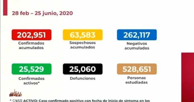 CORONAVIRUS EN MÉXICO AL 25 DE JUNIO: 25,060 MUERTOS Y 202,901 INFECTADOS