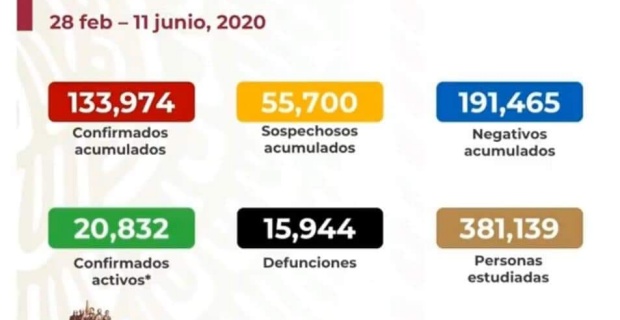 CORONAVIRUS EN MÉXICO AL 11 DE JUNIO: 15,944 MUERTOS Y 133,974 INFECTADOS