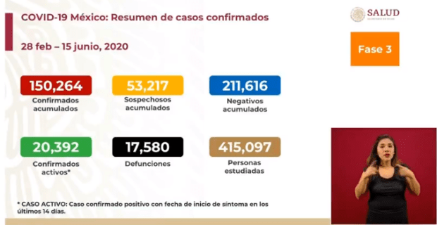 CORONAVIRUS EN MÉXICO AL 15 DE JUNIO: 17,580 MUERTOS Y 150,264 INFECTADOS