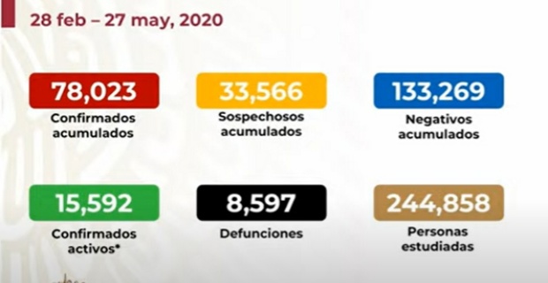 CORONAVIRUS EN MÉXICO AL 27 DE MAYO: 8,597 MUERTOS Y 78,023 INFECTADOS
